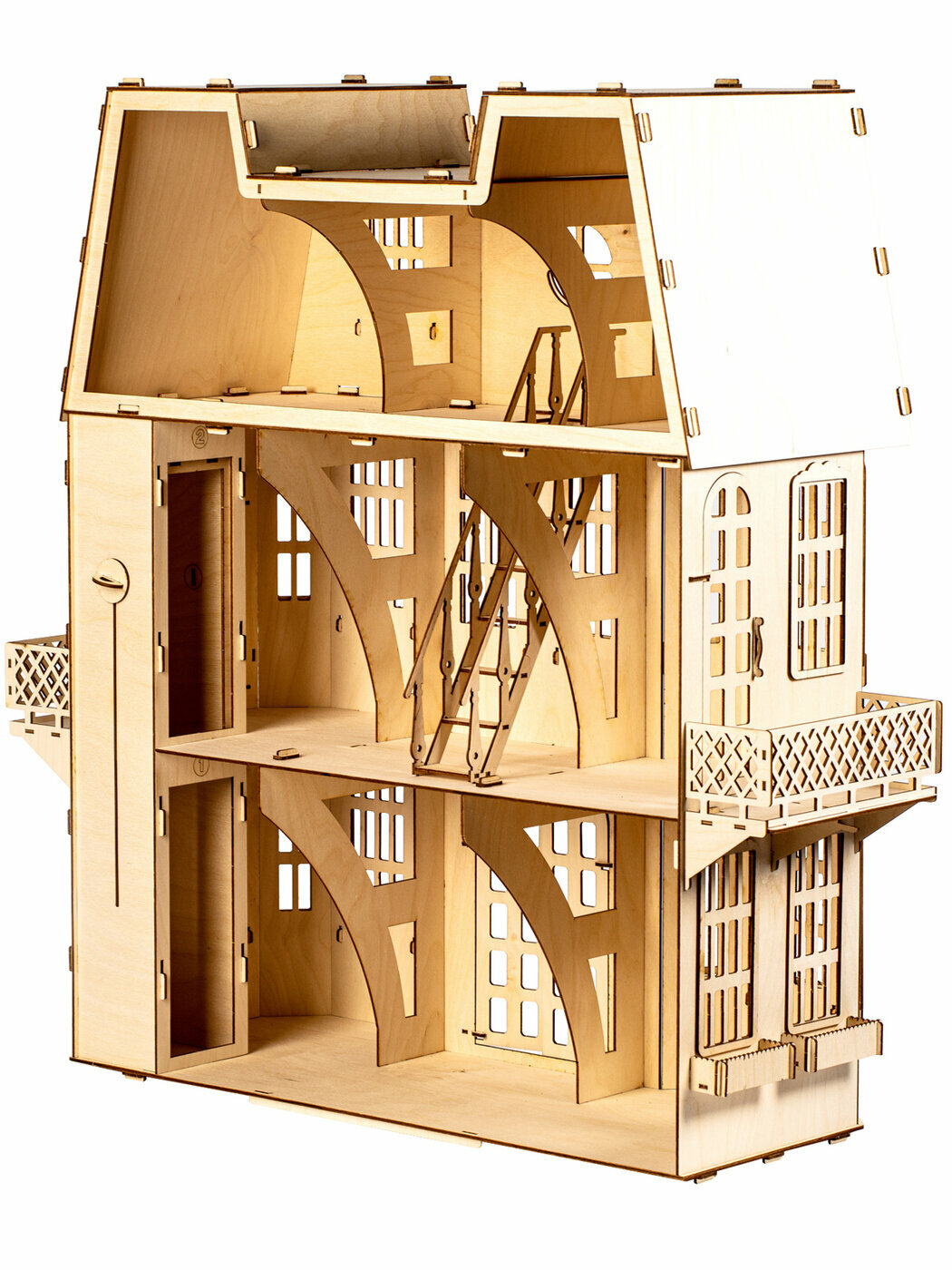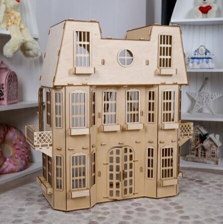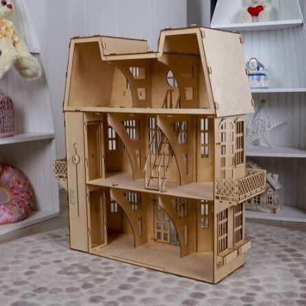 Кукольный деревянный домик (3 этажа) для кукол 15-20 см ВхШхГ: 71 х 64 х 27 см