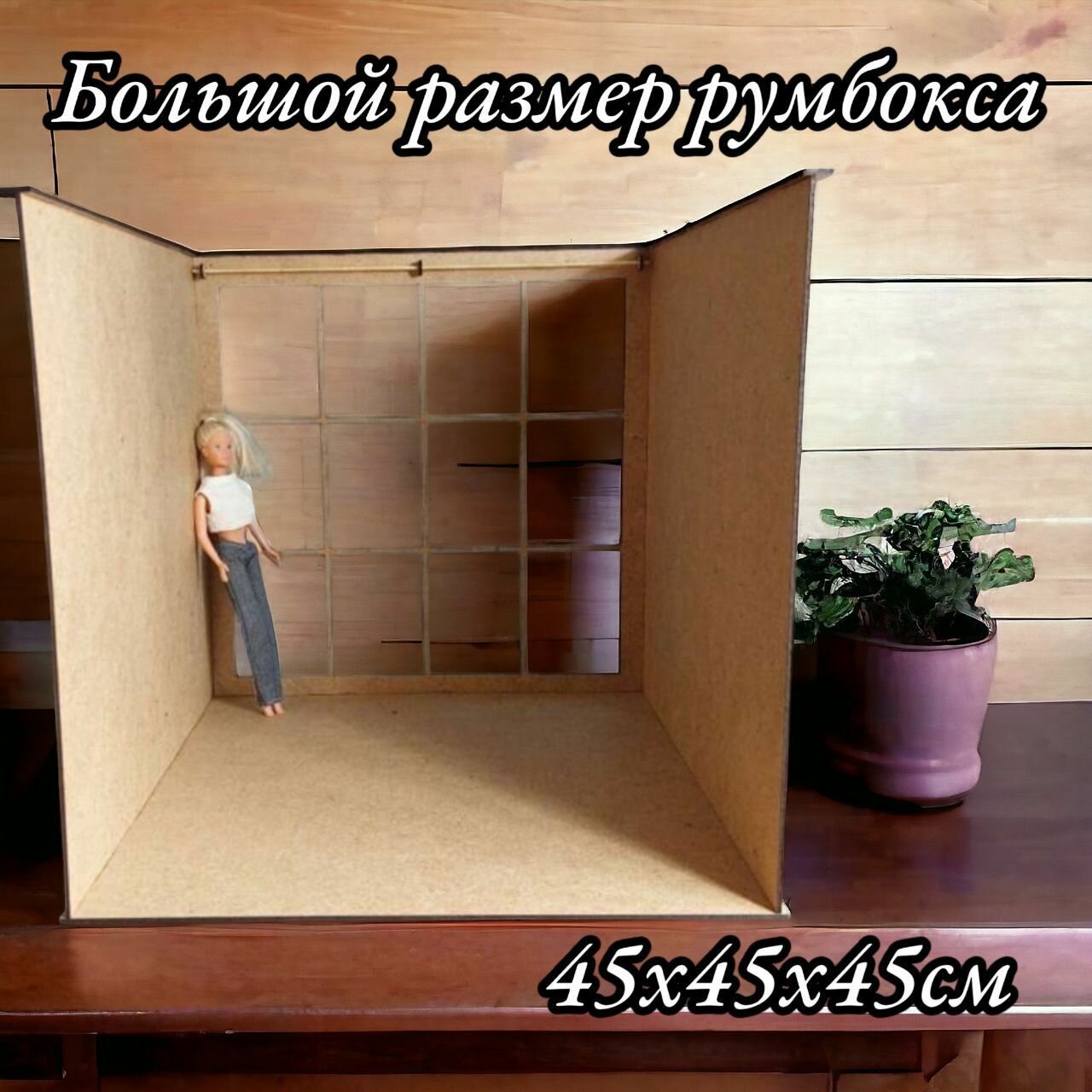 Деревянный румбокс с одним панорамным окном Дом для кукол Барби 45х45см интересное: