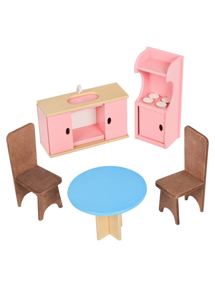 | Комплектация | кукольный дом; инструкция по сборке; 16 аксессуаров: раковина / унитаз (крышка поднимается) / круглый обеденный стол / 2 классических стула / кухонная плита (дверца духового шкафа открывается) / кухонная мойка (боковые дверцы гарнитура открываются) / диван / журнальный столик / открытый шкафчик / часы / настольная лампа / 2 большие кровати для кукол / колыбель / торшер |