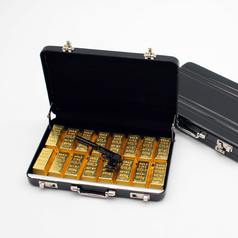 Кукольный домик "OB1", имитация, чемодан, из алюминиевого сплава, с золотыми слитками, миниатюрное украшение интересное: