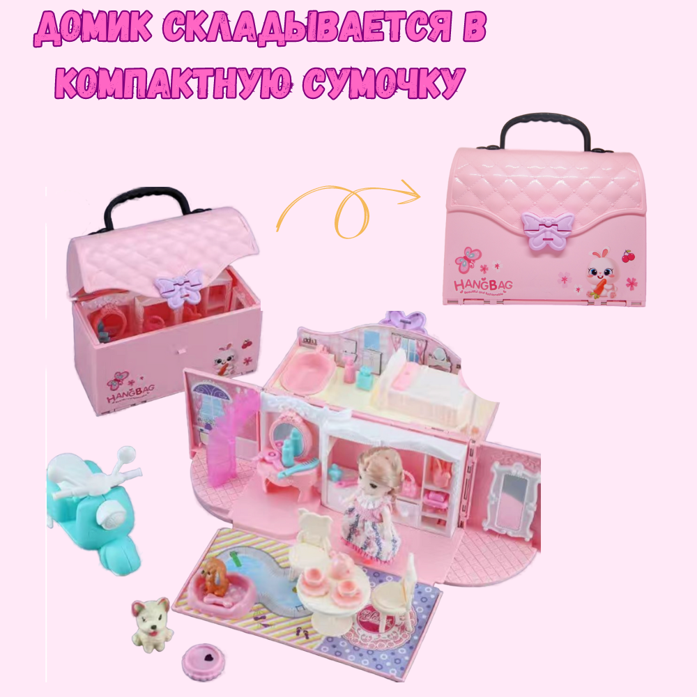 Кукольный домик с мебелью и аксессуарами, складной домик-сумочка интересное: