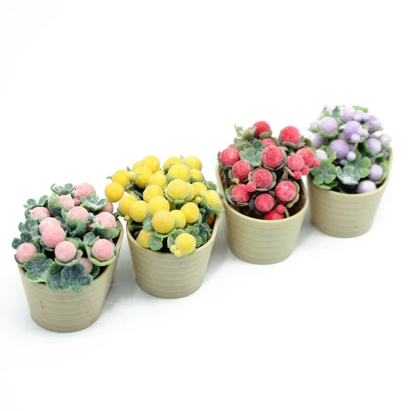 Миниатюрная модель цветка в горшке для кукольного домика 1/12, Red
