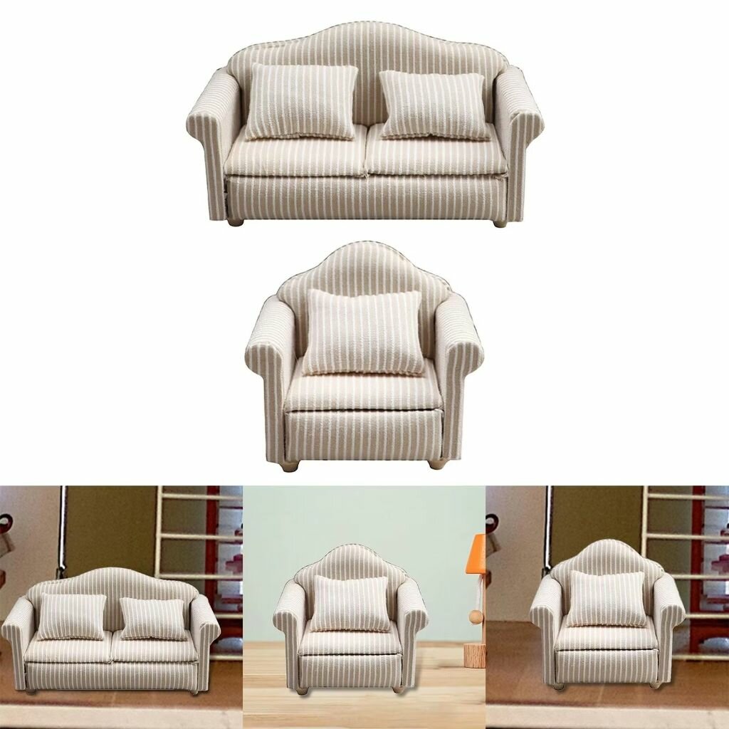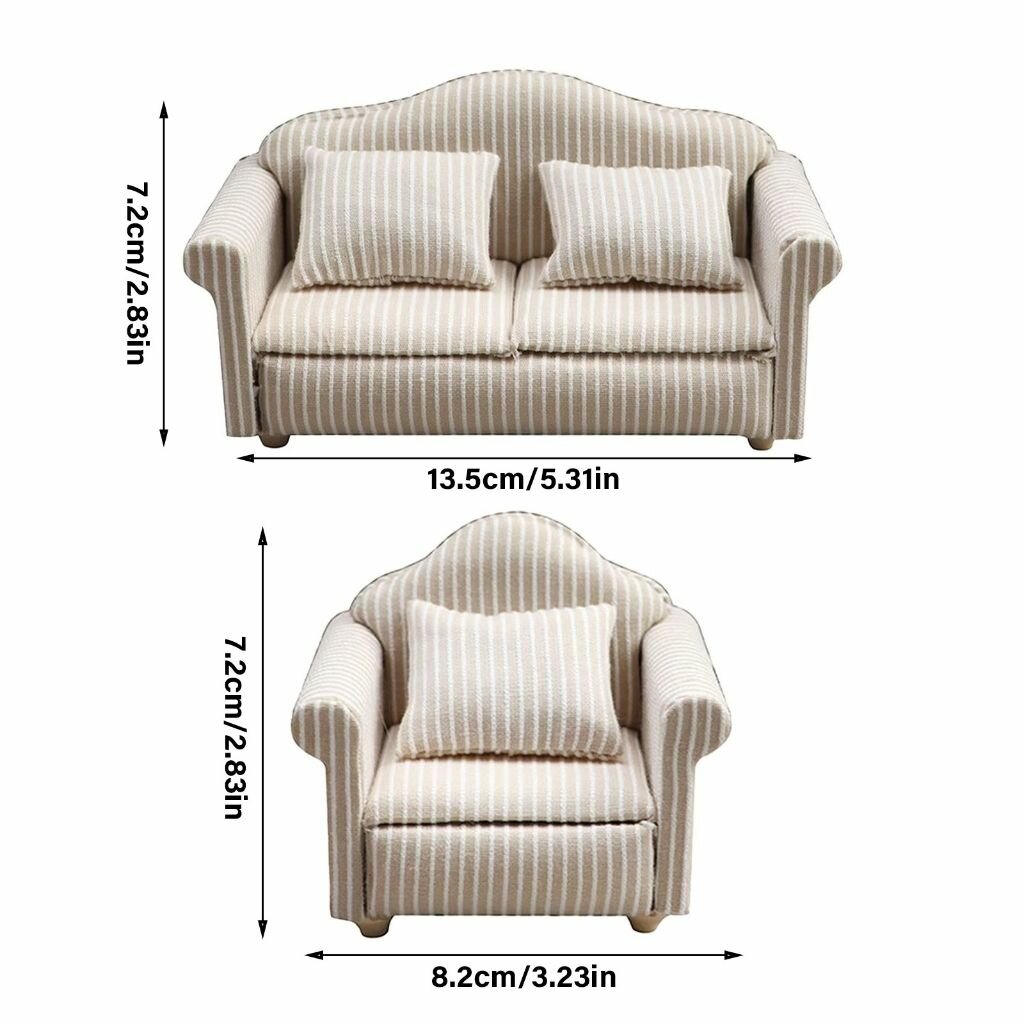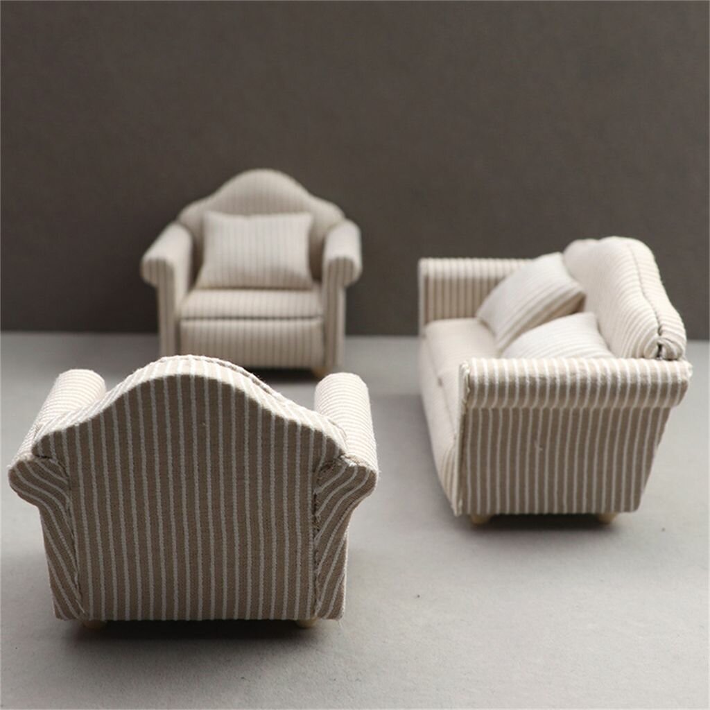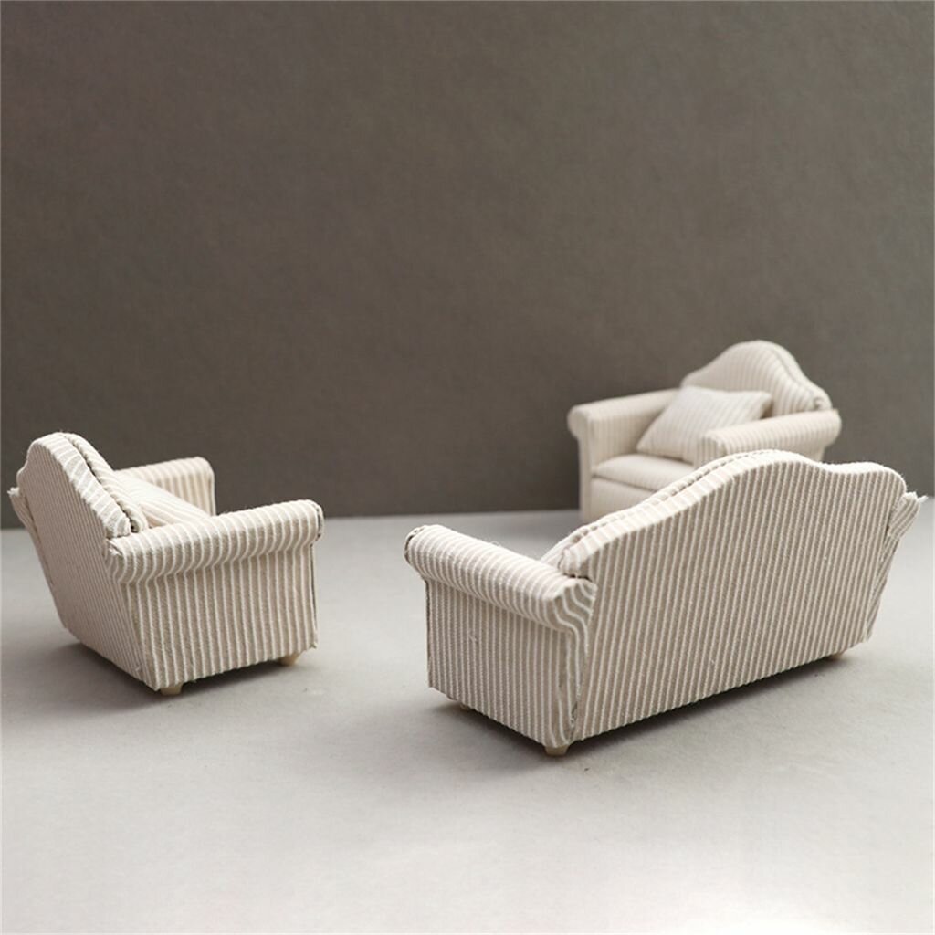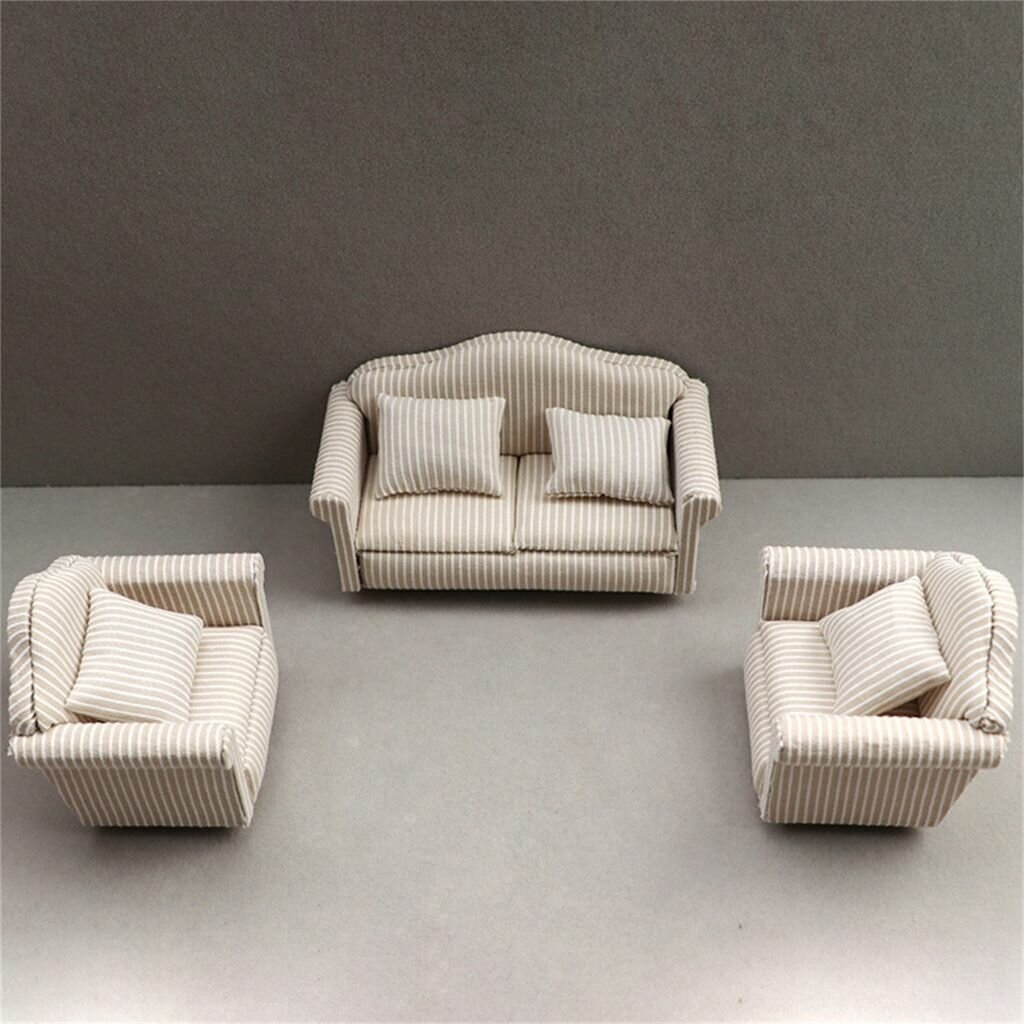 1:12 кукольный домик мини-мебель белый полосатый бежевый диван - двухместный диван интересное: