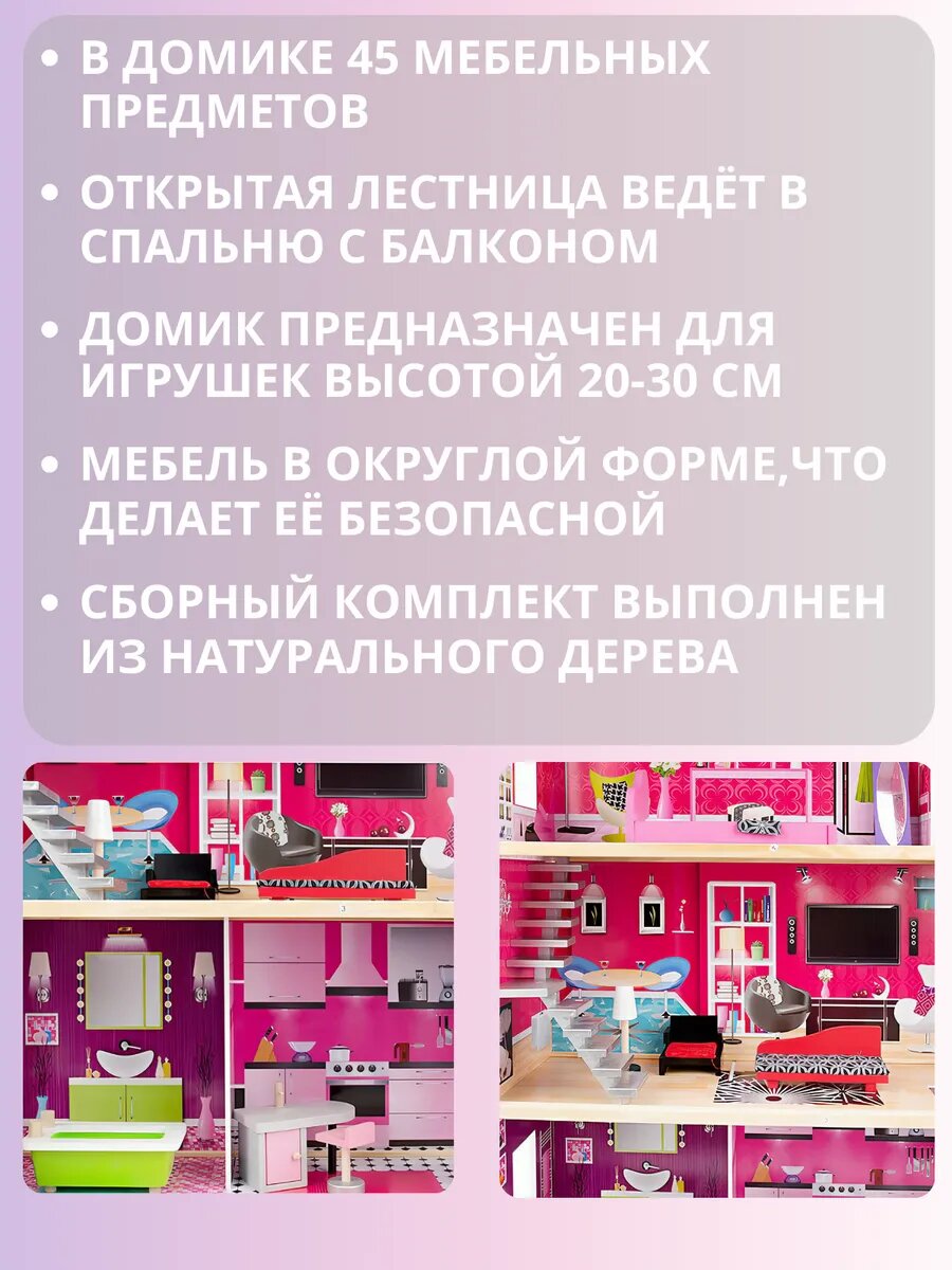 Кукольный домик с мебелью 115 см интересное: