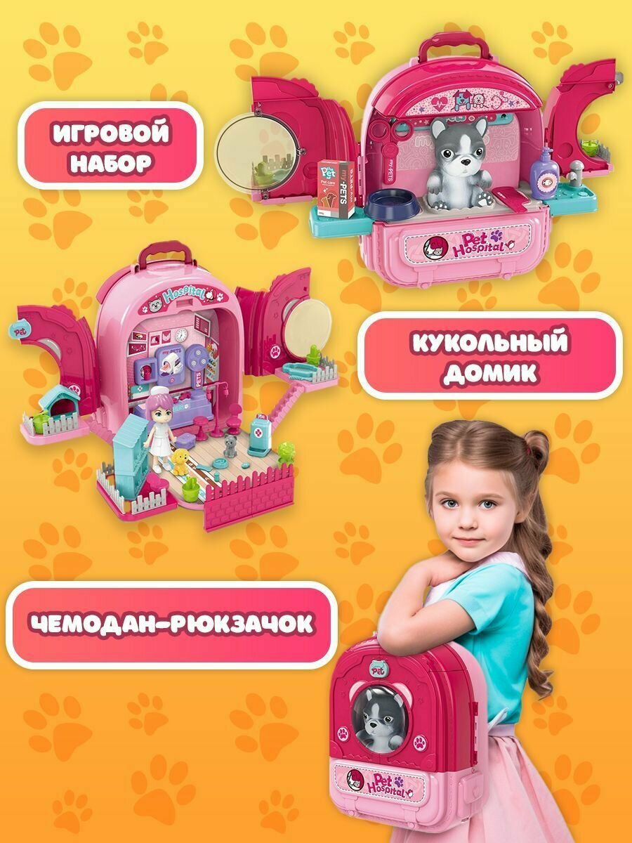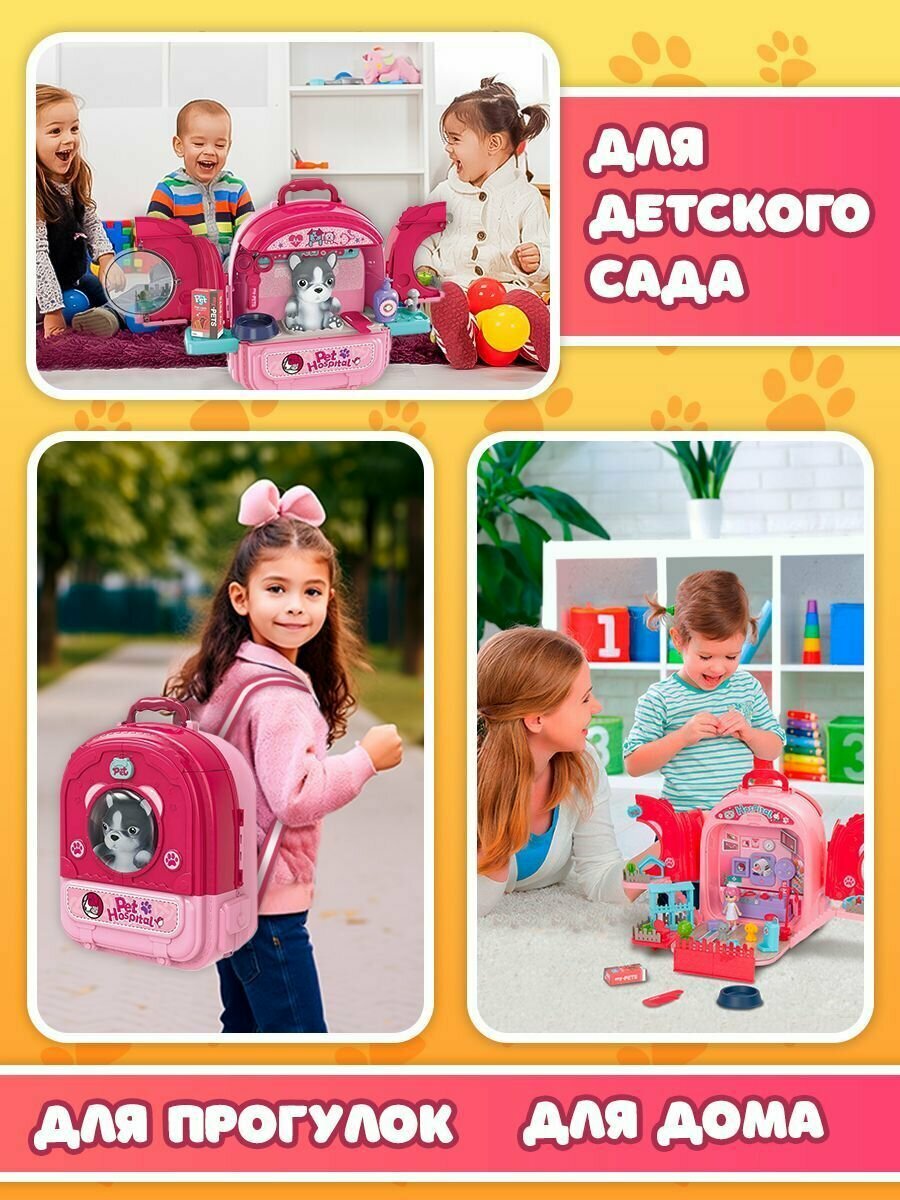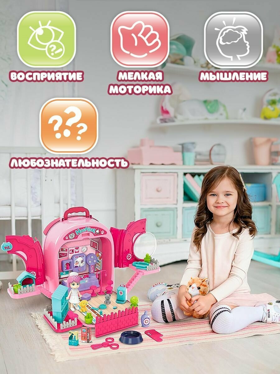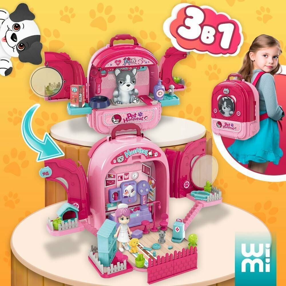 Набор ветеринара детский WiMi питомец в переноске и кукольный домик с мебелью интересное: