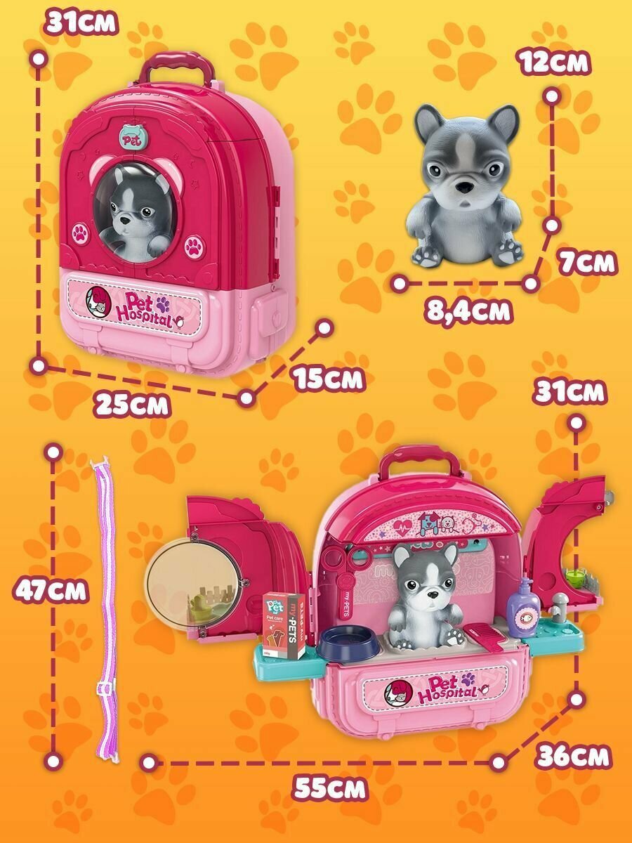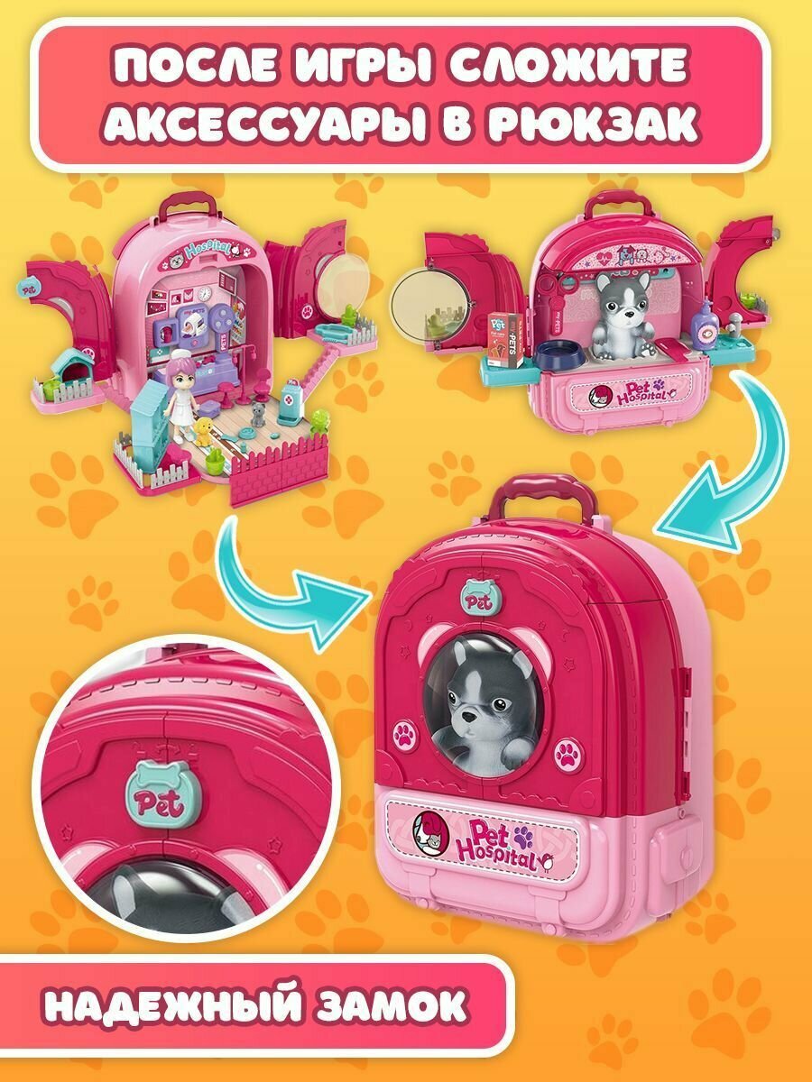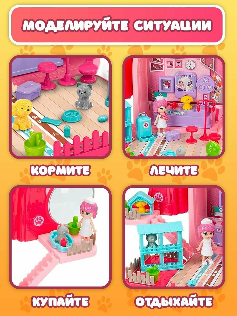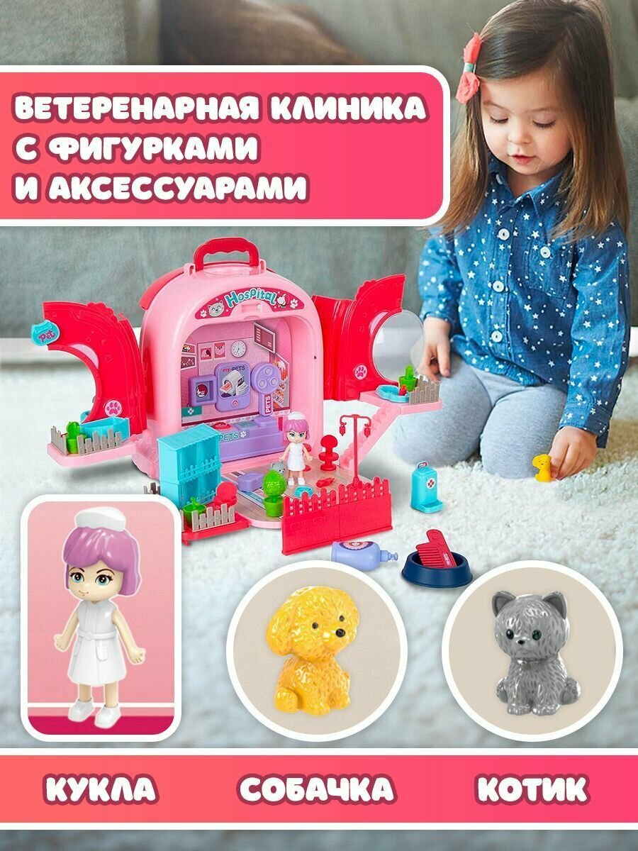 Набор ветеринара детский WiMi питомец в переноске и кукольный домик с мебелью интересное: