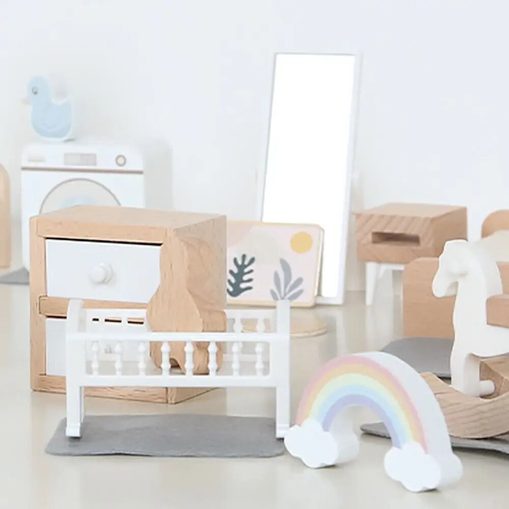 Купить Деревянный набор мебели для кукольного домика, Bedroom