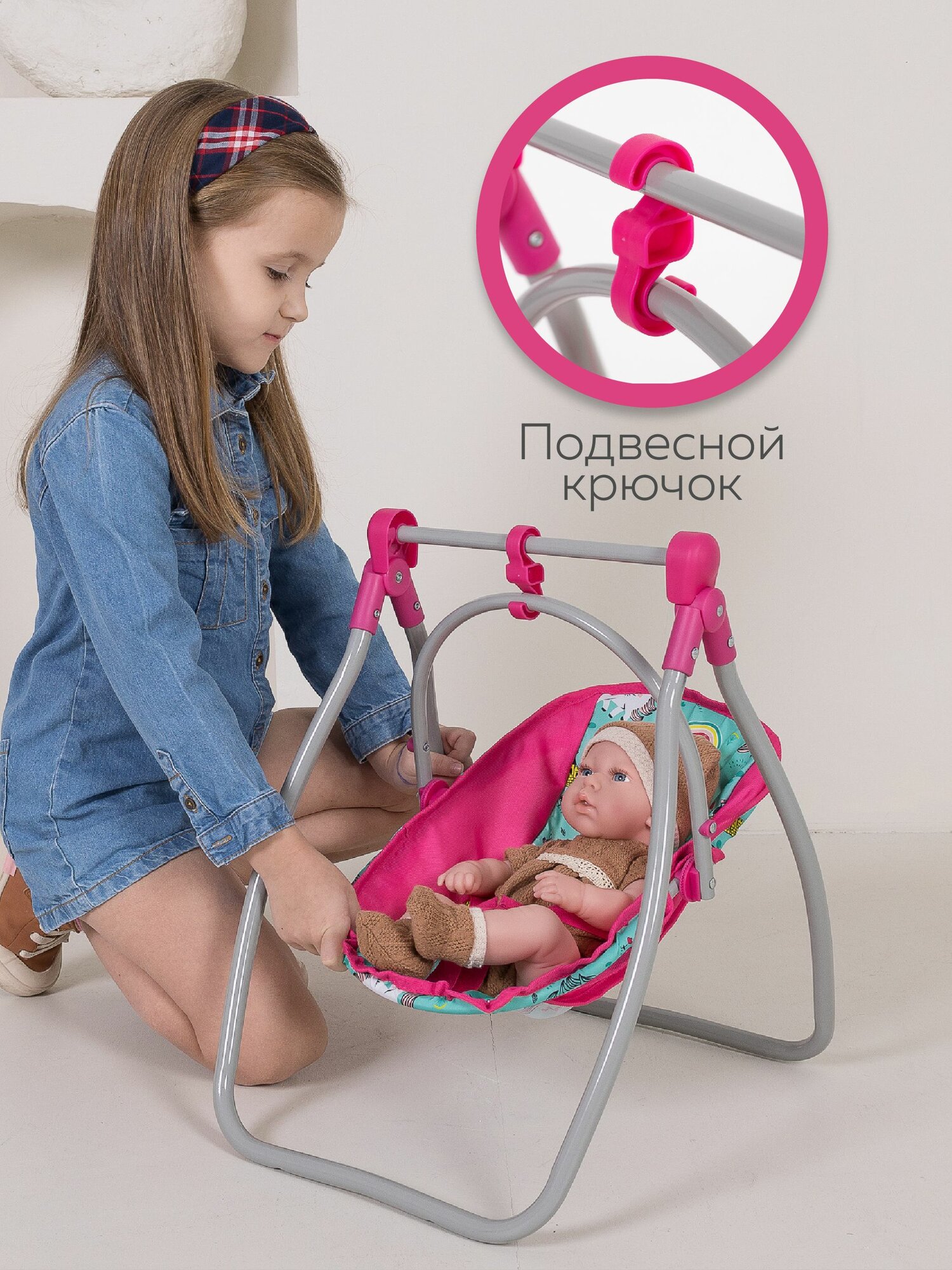 Стульчик трансформер для кормления кукол, металлический, розовый/зеленый интересное: