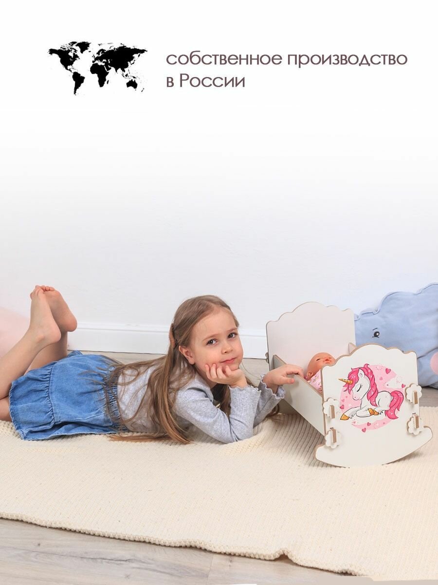 Купить Кроватка-качалка игрушечная люлька детская деревянная для куклы 41 см из ламинированного МДФ Единорог
