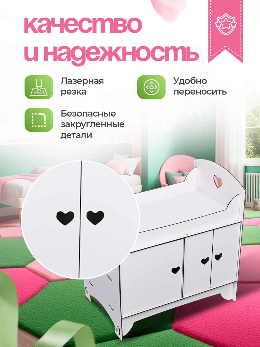 Кроватка со шкафом игрушечная детская для кукол деревянная Белая /Без постельного белья интересное: