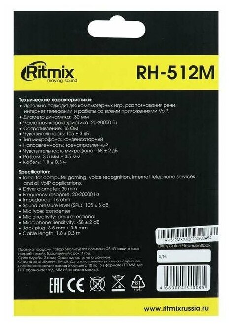 Наушники Ritmix RH-512M, компьютерные, микрофон, 105 дБ, 16 Ом, 3.5 мм, 1.8 м, черные интересное: