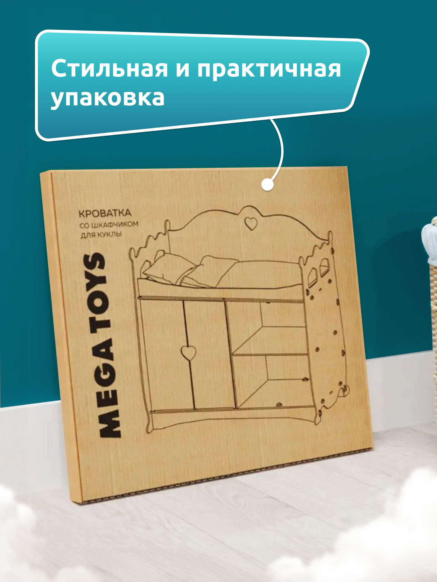 Кроватка для кукол MEGA TOYS серия манюня пеленальный шкаф кроватка деревянная для куклы до 45 см Единороги интересное: