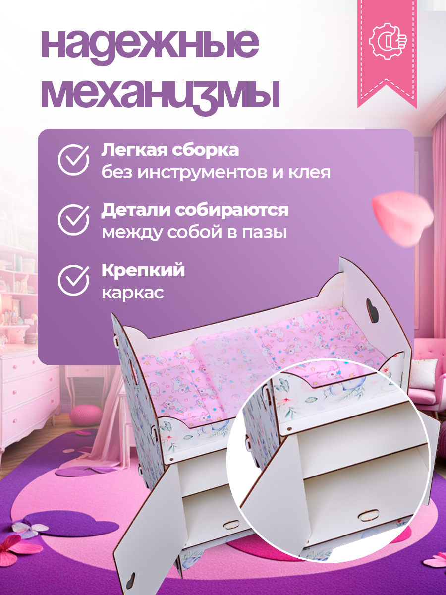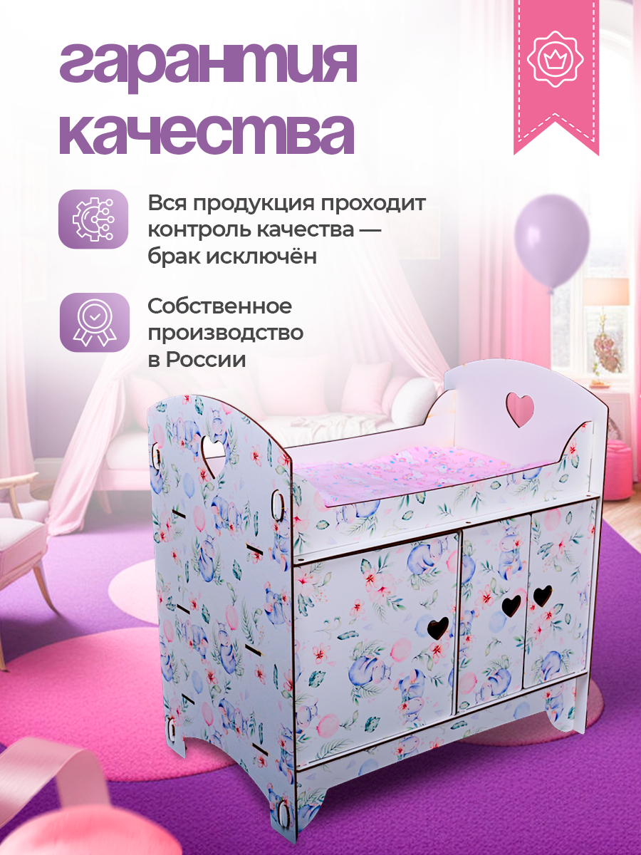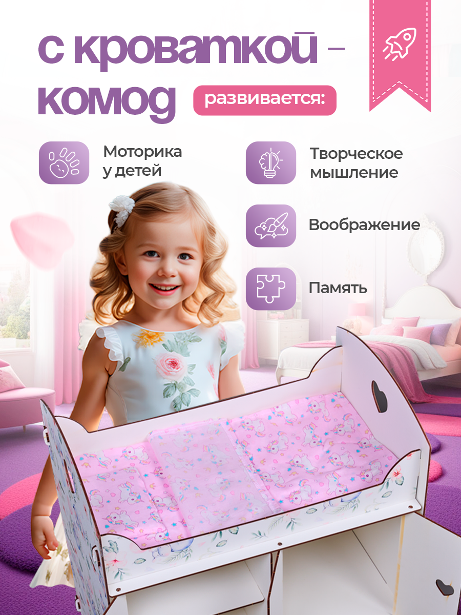 Купить Кроватка со шкафом игрушечная детская для кукол деревянная Бегемотики / Постельное белье в подарок