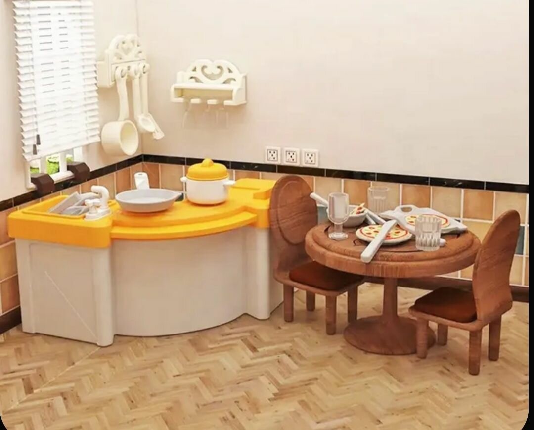 Кукольная мебель для домика , кухня с бытовой техникой для бархатных фигурок и кукол