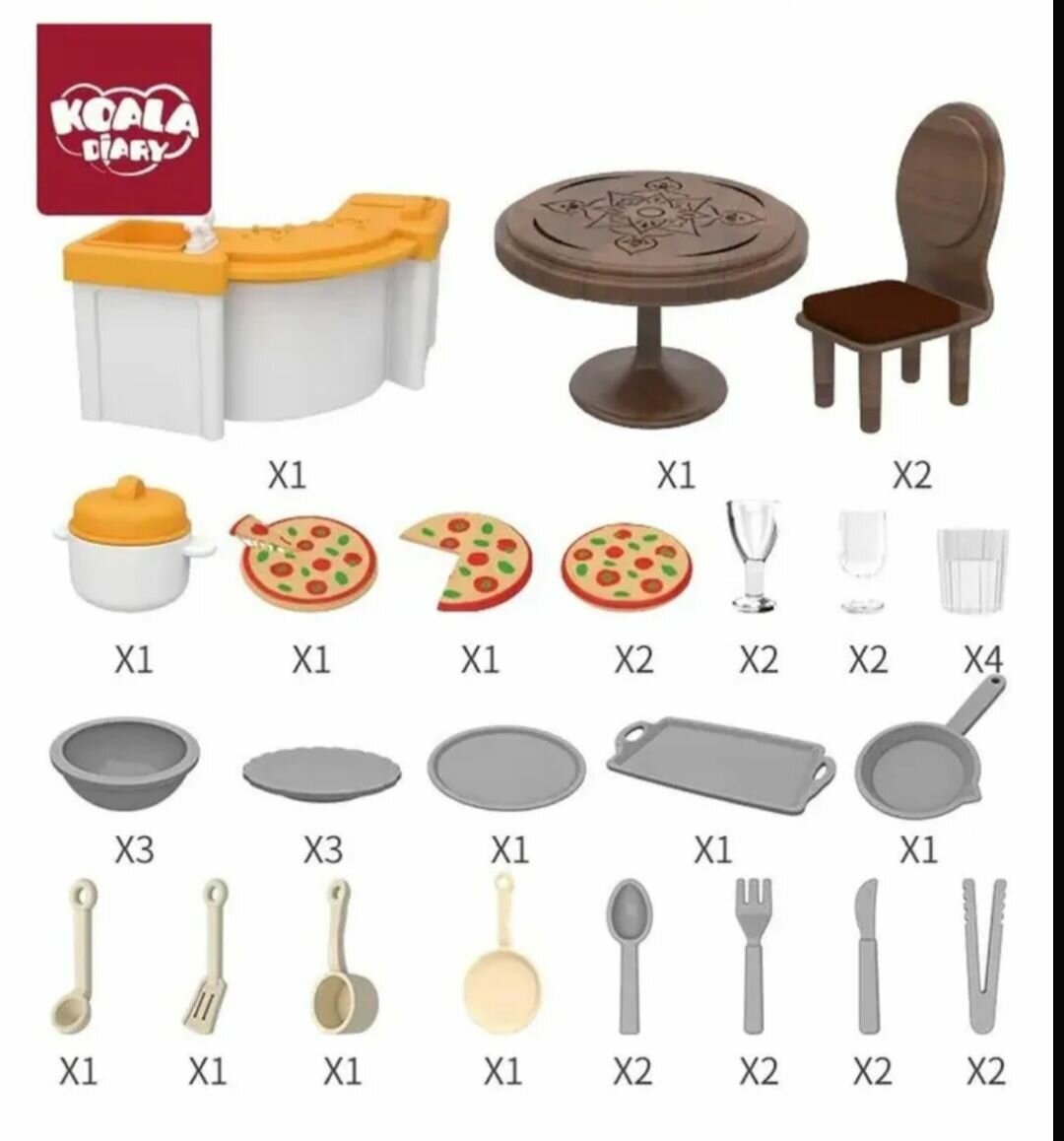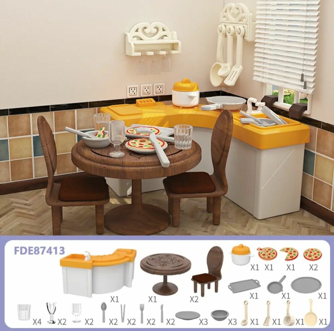 Купить Кукольная мебель для домика , кухня с набором посуды и еды для кукол и бархатных фигурок