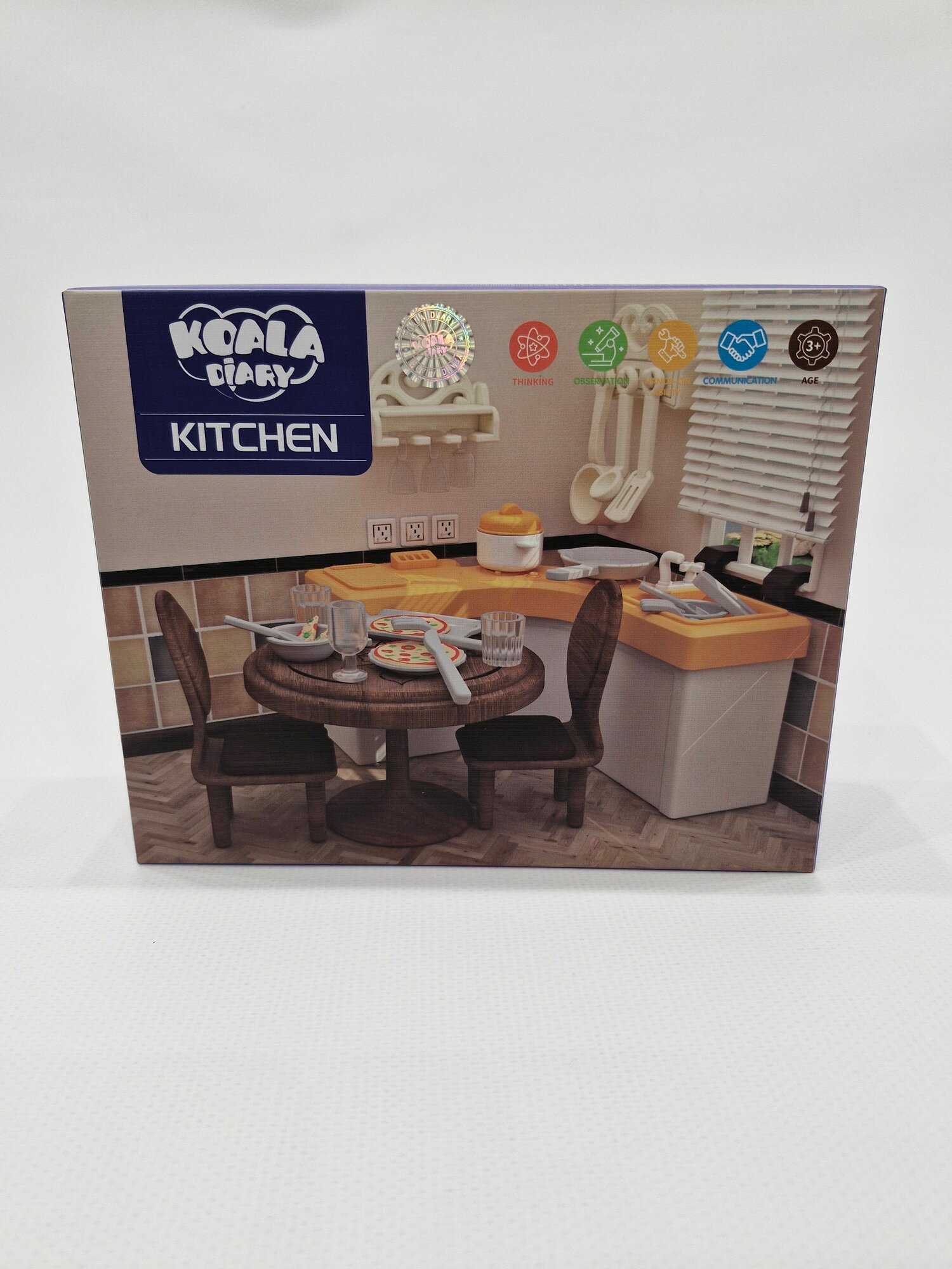 Кукольная мебель для домика , кухня с набором посуды и еды для кукол и бархатных фигурок