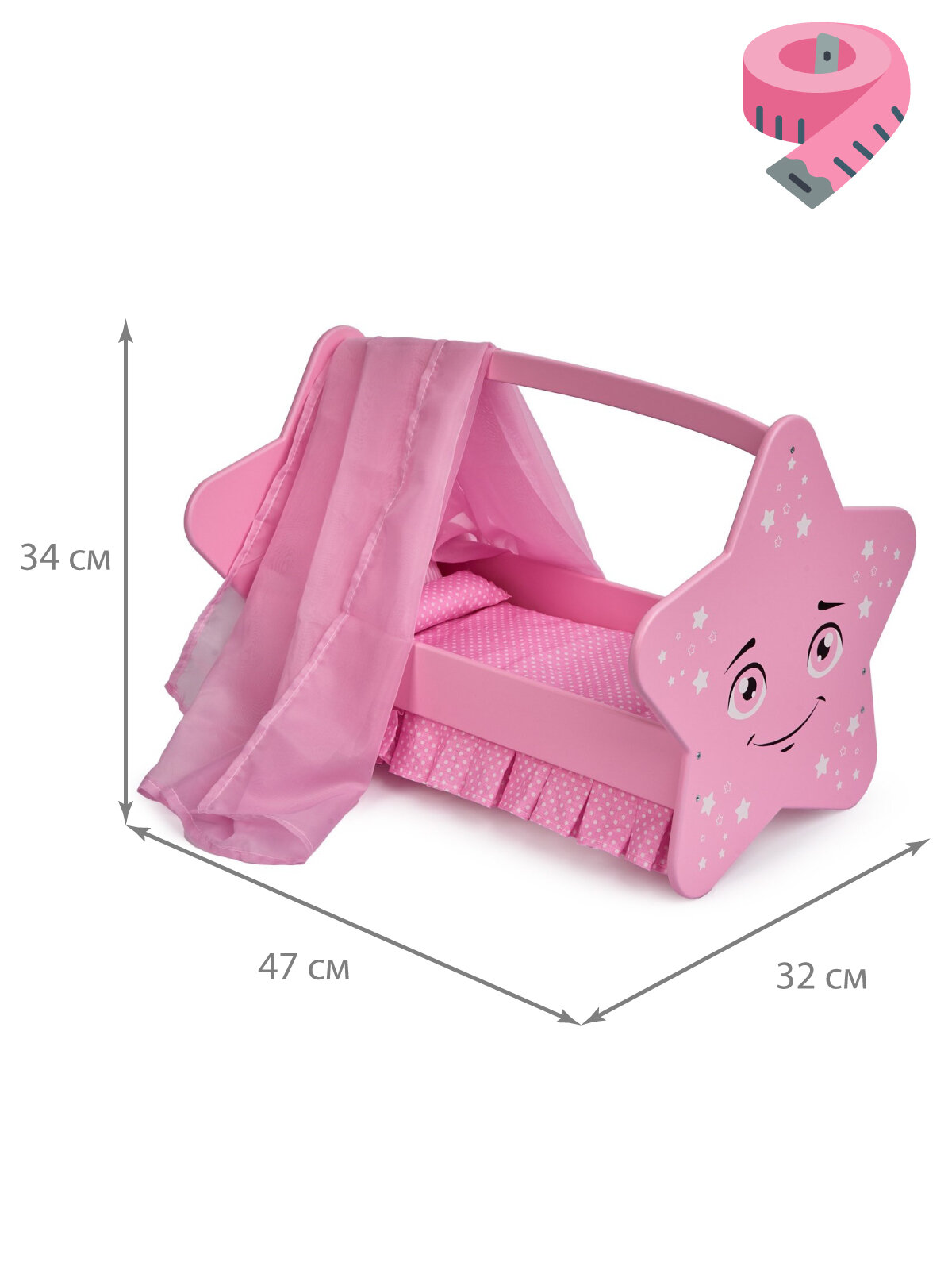 Мебель для кукол деревянная 47 см МАНЮНЯ игрушечная кроватка для куклы звездочка MEGA TOYS / аксессуары для кукол reborn, реборн интересное:
