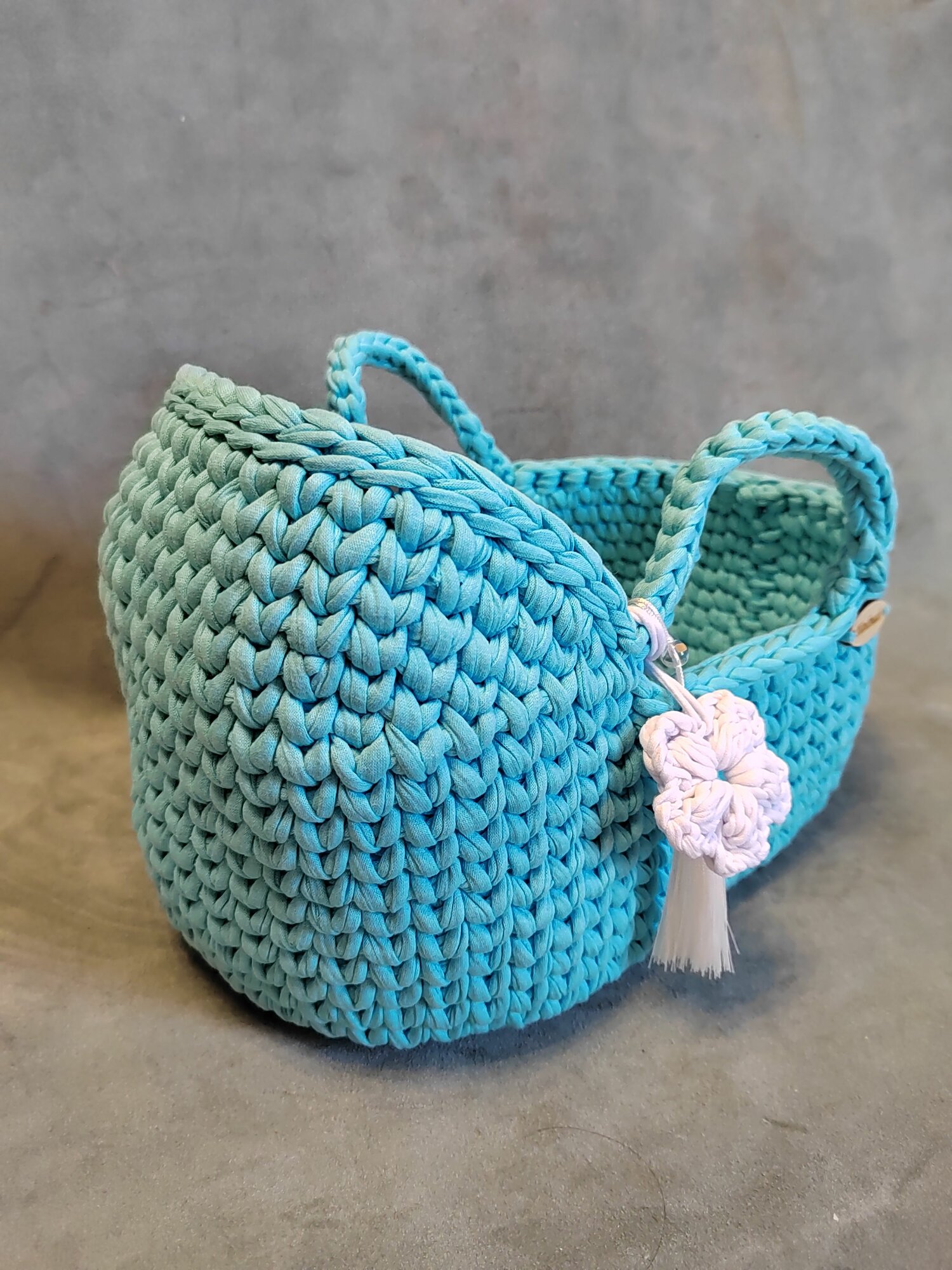 Купить Вязаная люлька для кукол/кроватка для кукол ( голубой) 25х15см