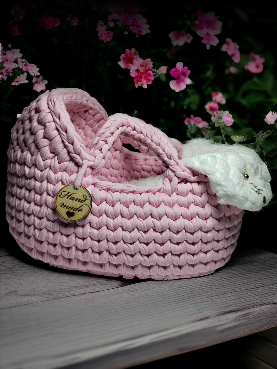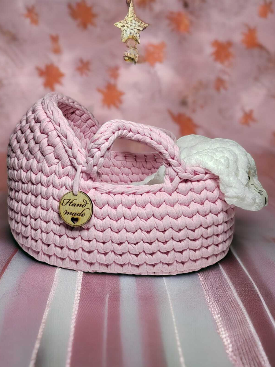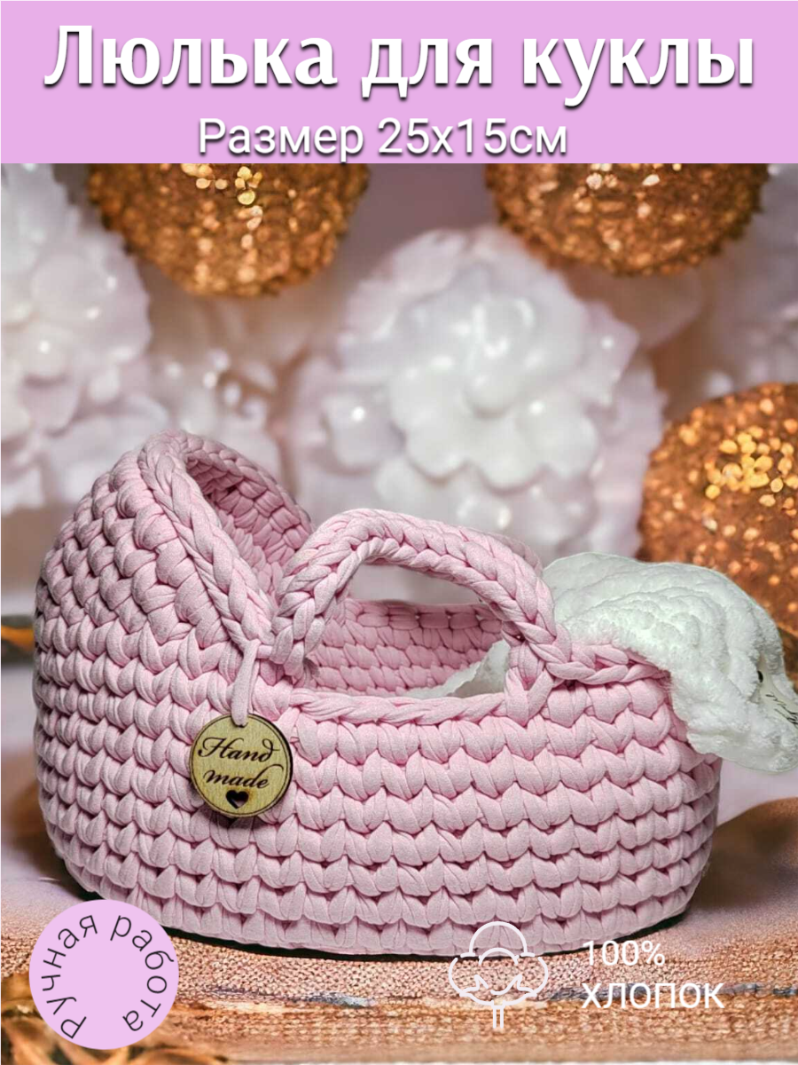 Люлька для кукол, вязаная, дерево, хлопок, ручная работа, 25x15 см цв. розовый интересное: