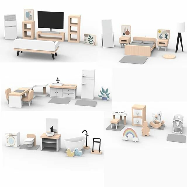 Купить Набор кукольной мебели 5в1 Деревянная мебель для домика