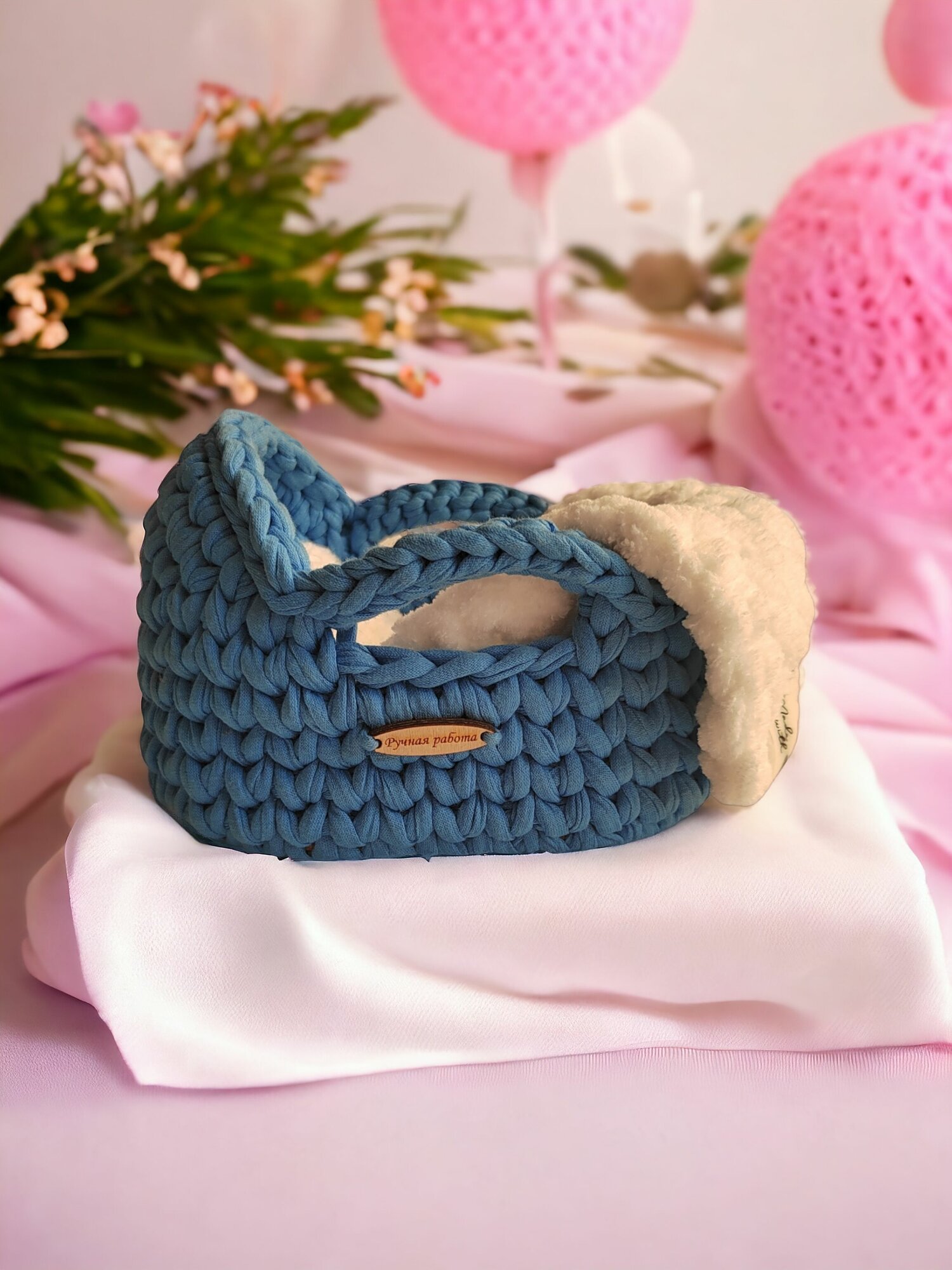 Люлька для кукол, вязаная, ручная работа, 15x10 см, цвет светло-розовый