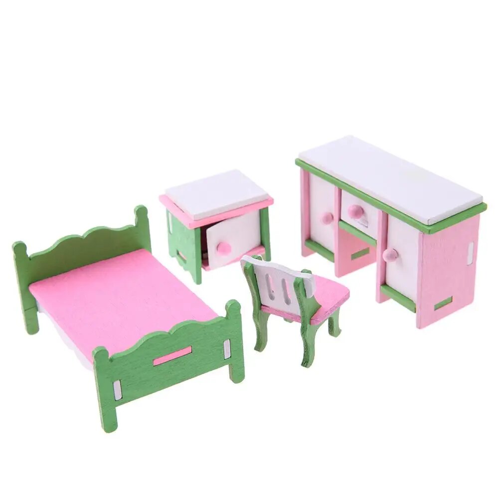 Купить MOONBIFFY Детская деревянная мебель для кукол 12 комплектов, Розовый