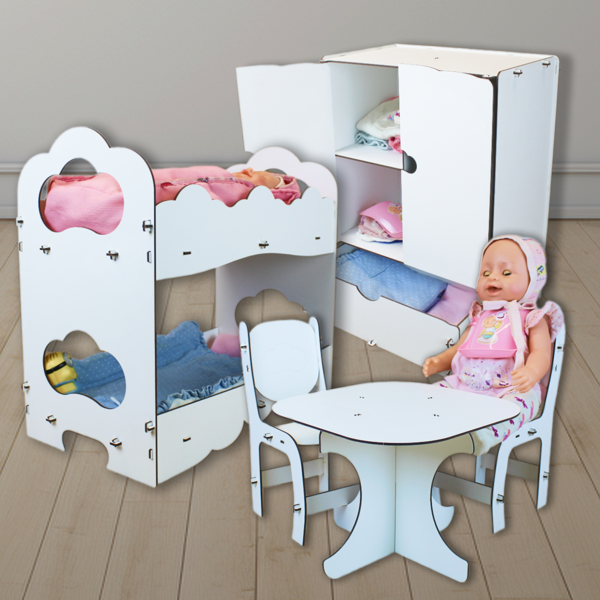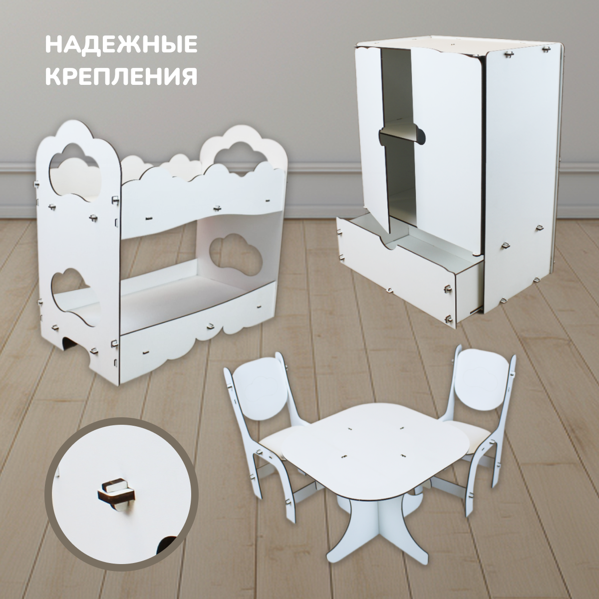 Купить Набор мебели для кукол. Стол и стулья, Шкаф, Двухъярусная кровать
