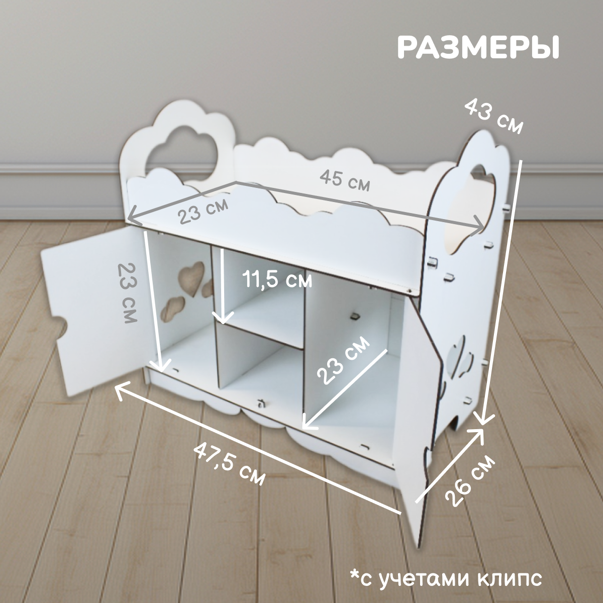 Мебель для кукол. Шкаф для пупсов до 45 см , белый, деревянный