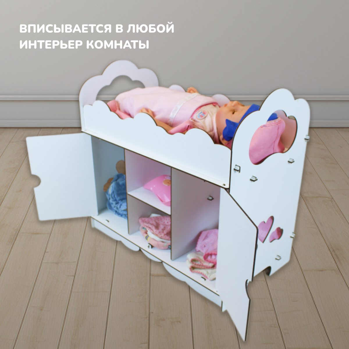 Мебель для кукол - кроватка со шкафом и полками для кукол до 45 см, белый интересное:
