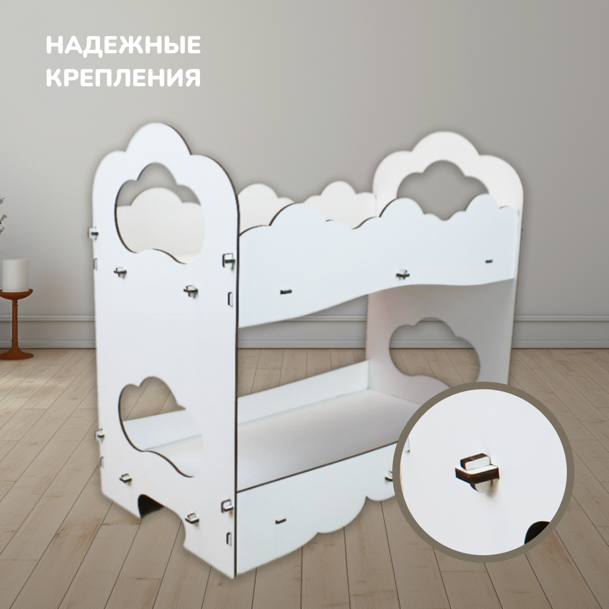 Кукольная мебель - двухъярусная кроватка, игрушка для детей, белый цвет интересное: