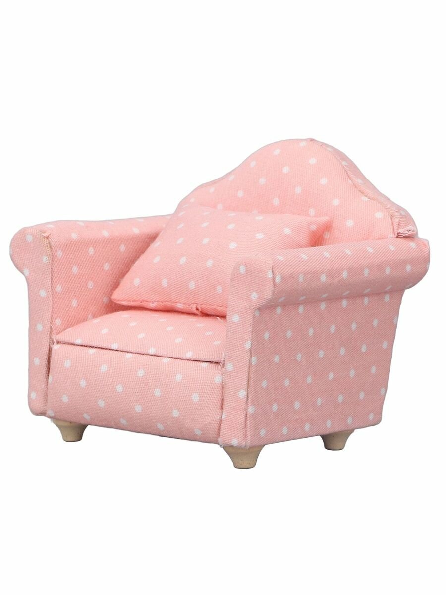 Миниатюра кукольного домика в масштабе 1:12, розовая и белая миниатюра дивана и стула в горошек интересное:
