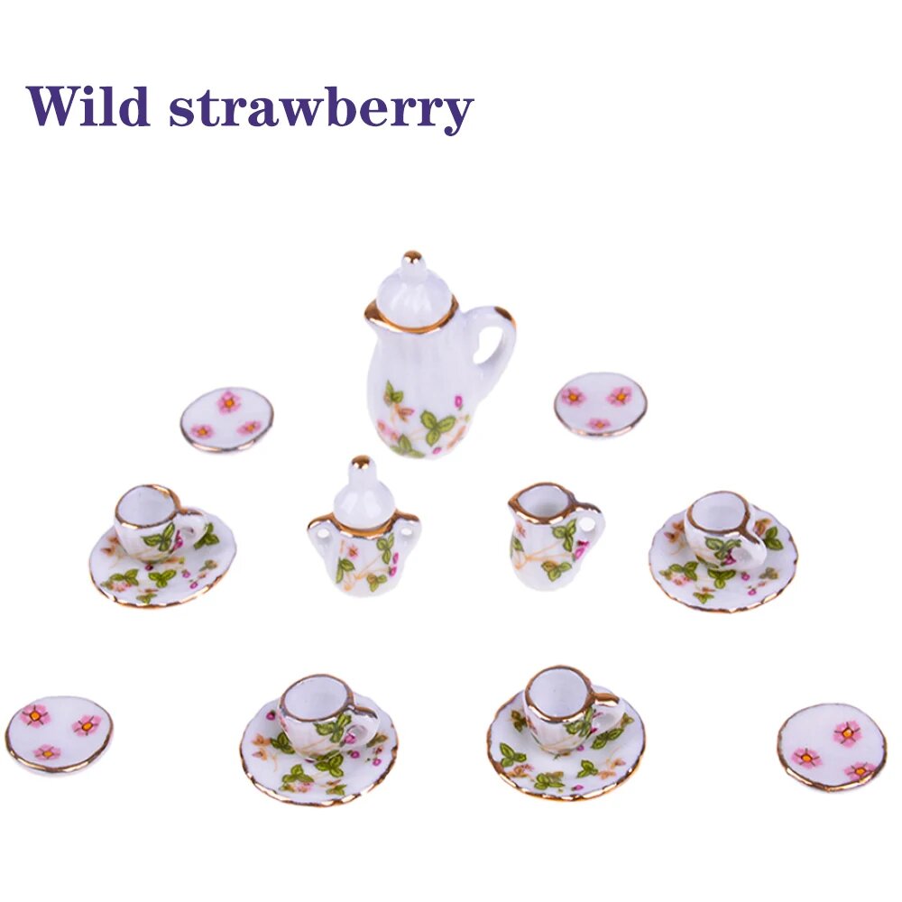 Купить Миниатюрный фарфоровый чайный набор для кукольного домика 15 шт, wild strawberry