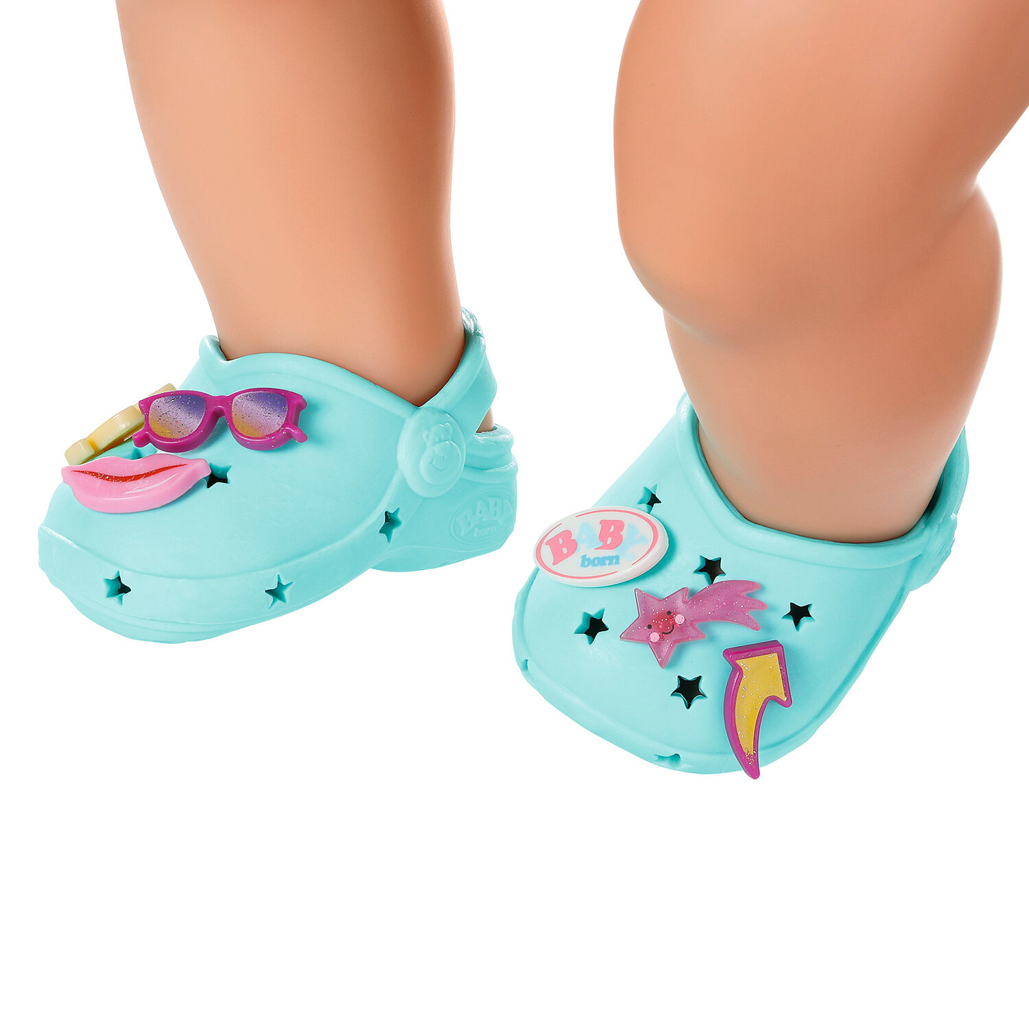 Беби борн. Стильные сандалии Кроксы для кукол 43 см, голубые. BABY born интересное: