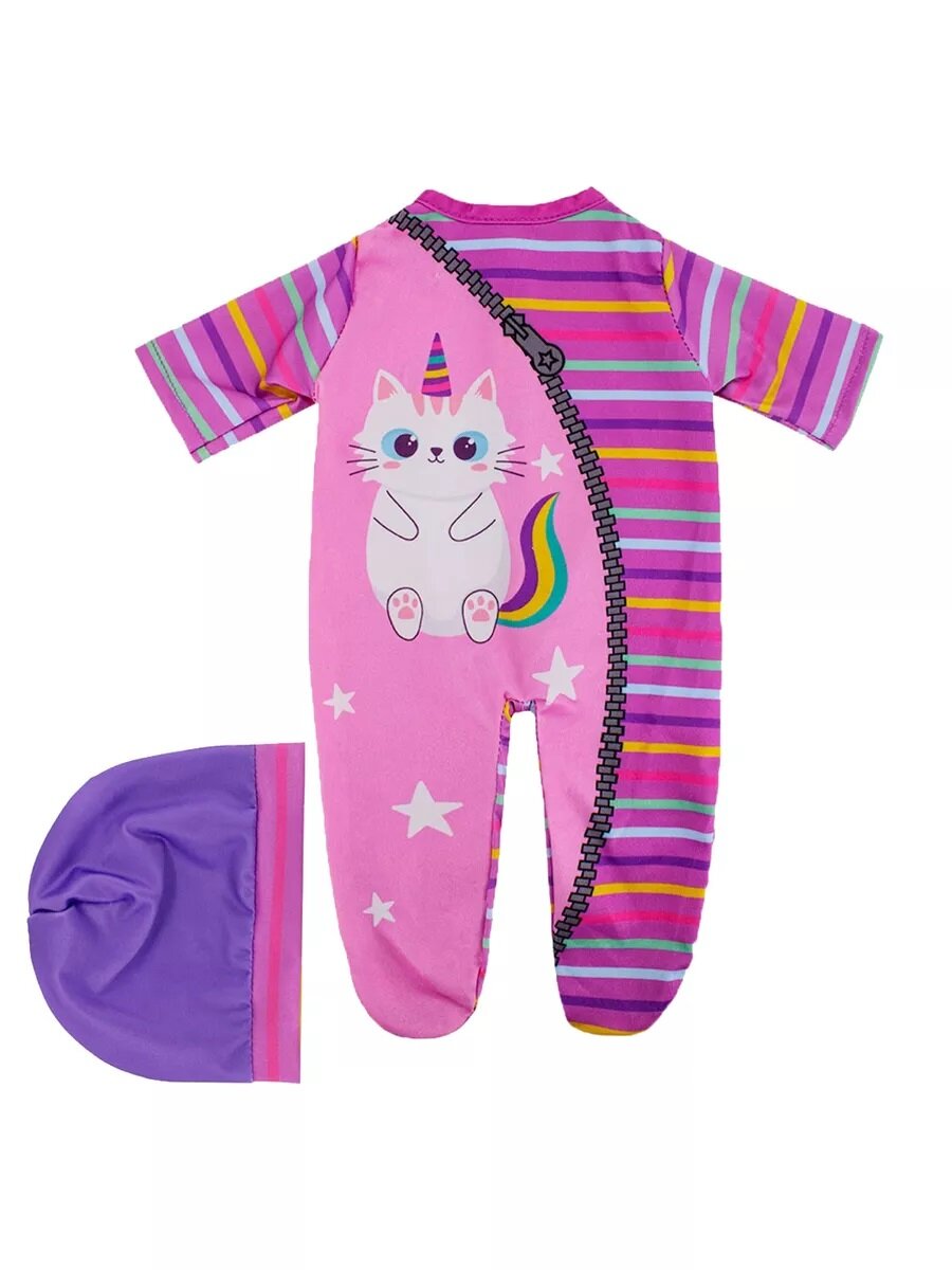 Купить Одежда для куклы пупса ростом 38 - 42 см, розовый комбинезон слип с кошкой единорогом и шапочка