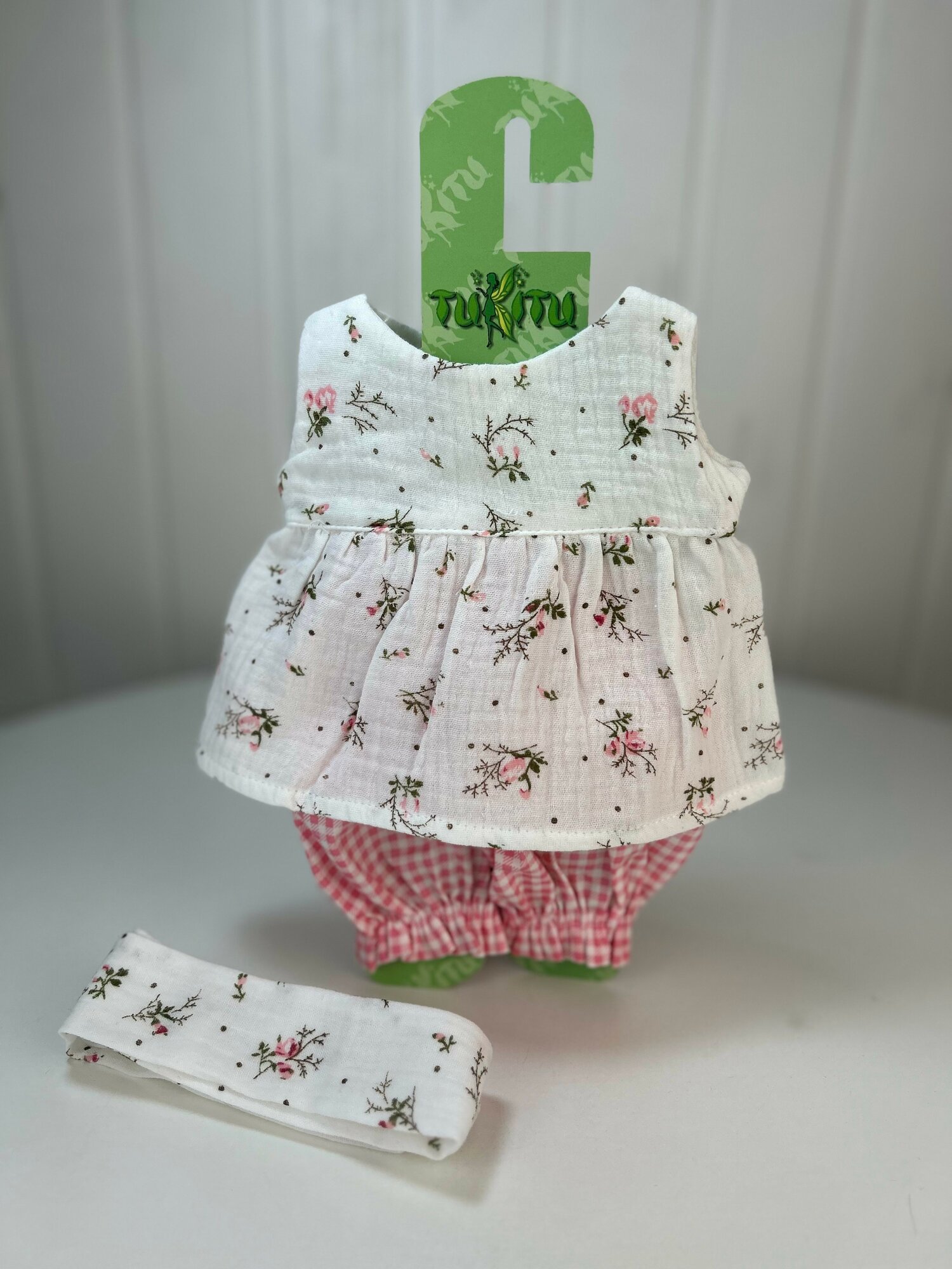 Купить Комплект одежды для кукол 45 см: платье, штанишки, повязка на голову, арт. 35