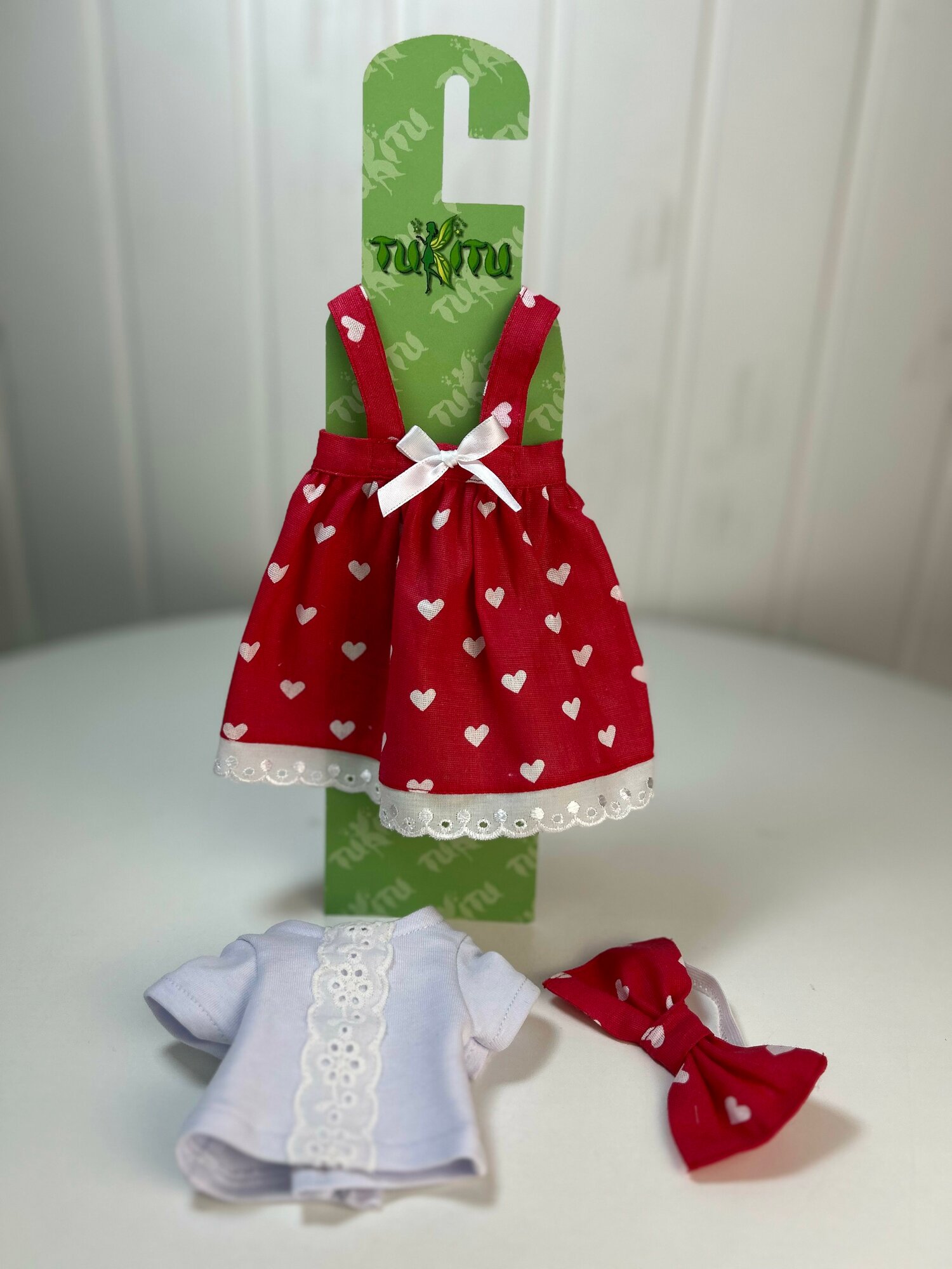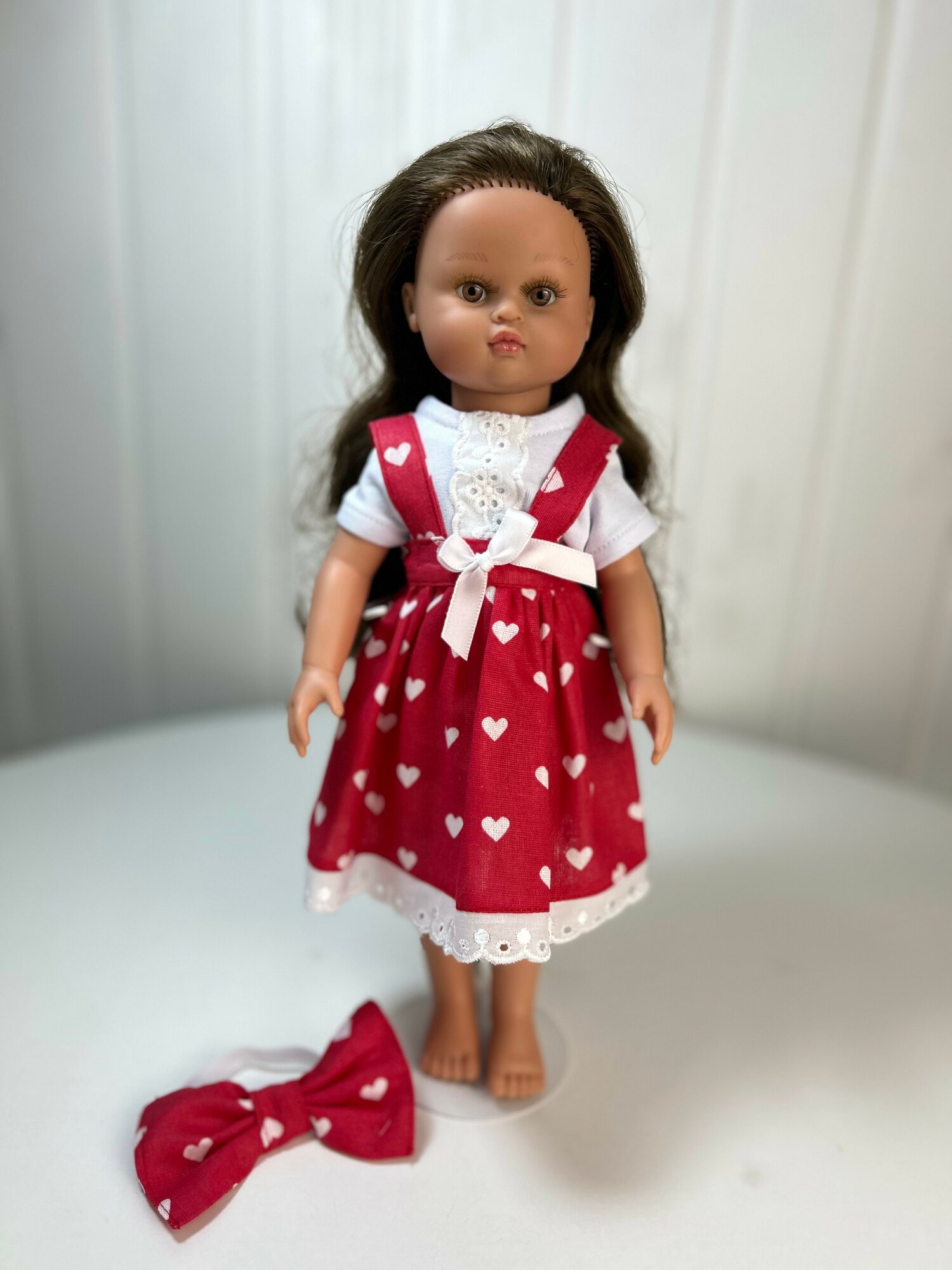 Комплект одежды для кукол: Сарафан "Сердечки", бант на голову, арт. 4 интересное:
