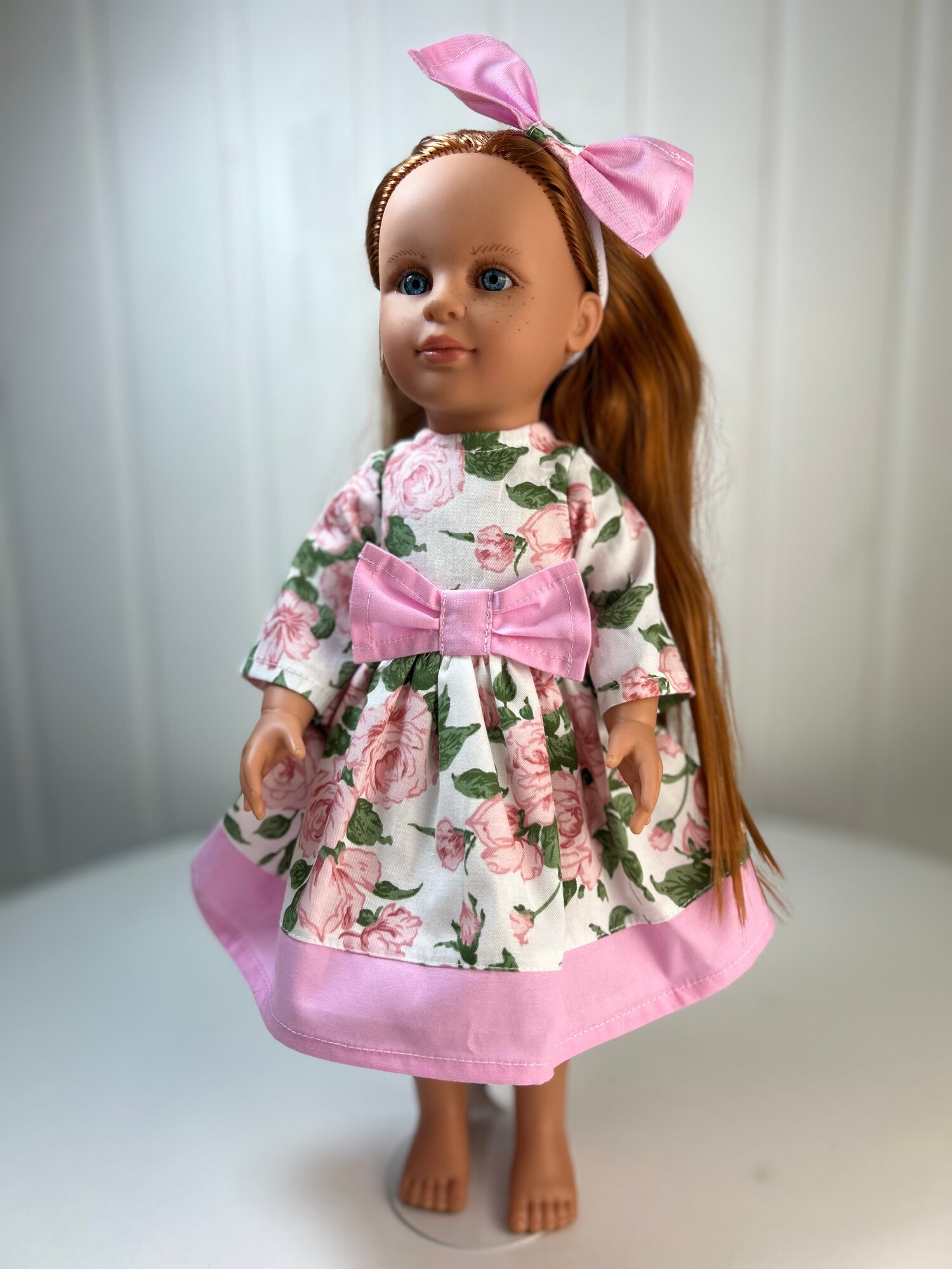 Комплект одежды для кукол 40 см: платье "Розочки", повязка-бант (обхват талии 17-19 см), арт. 80 интересное: