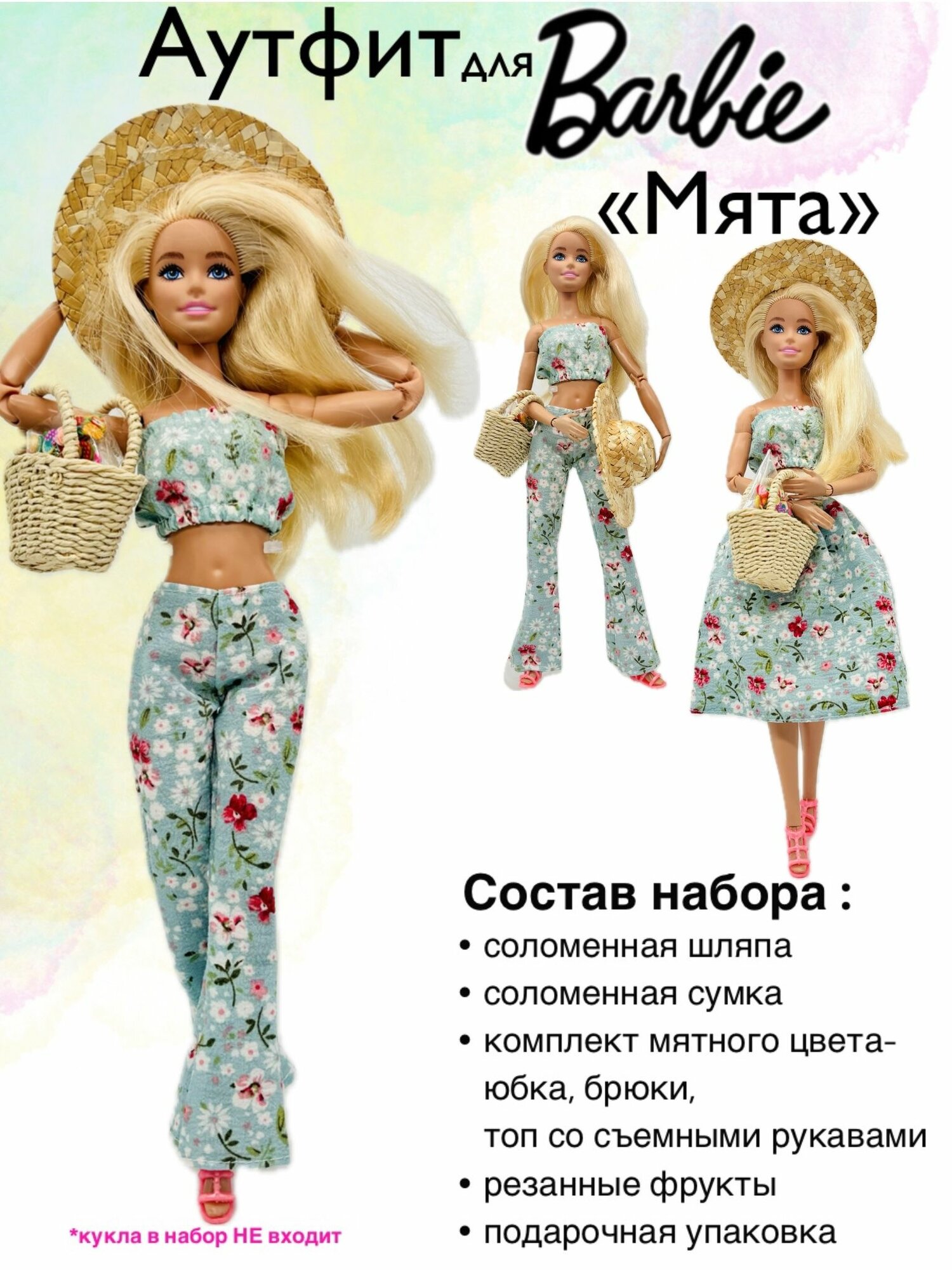 Купить Одежда для куклы Барби. Юбка, брюки, топ и соломенная шляпа