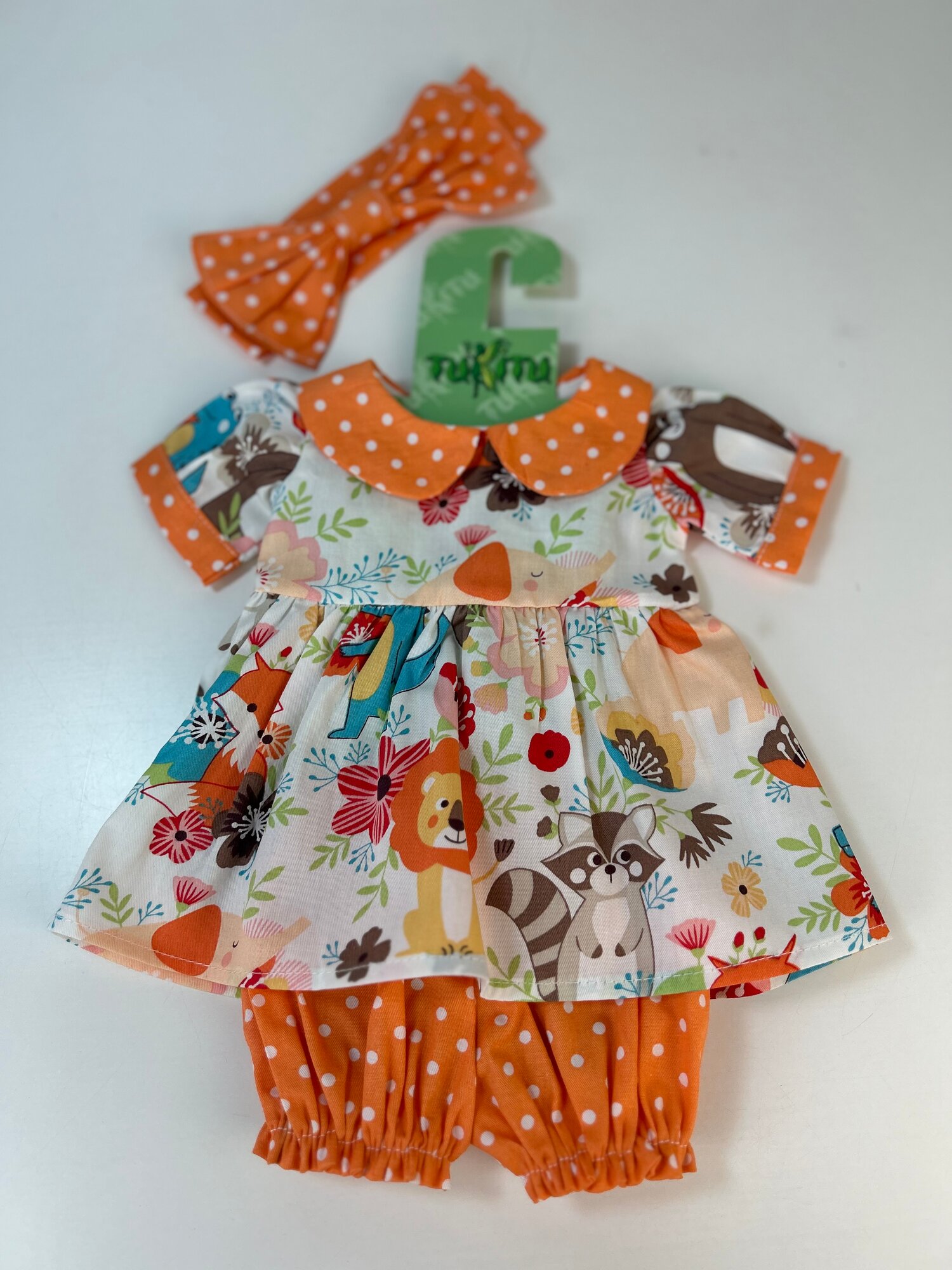 Комплект одежды "Зверушки" для пупсов 43-47 см: платье, штанишки, бант, арт. 121 интересное: