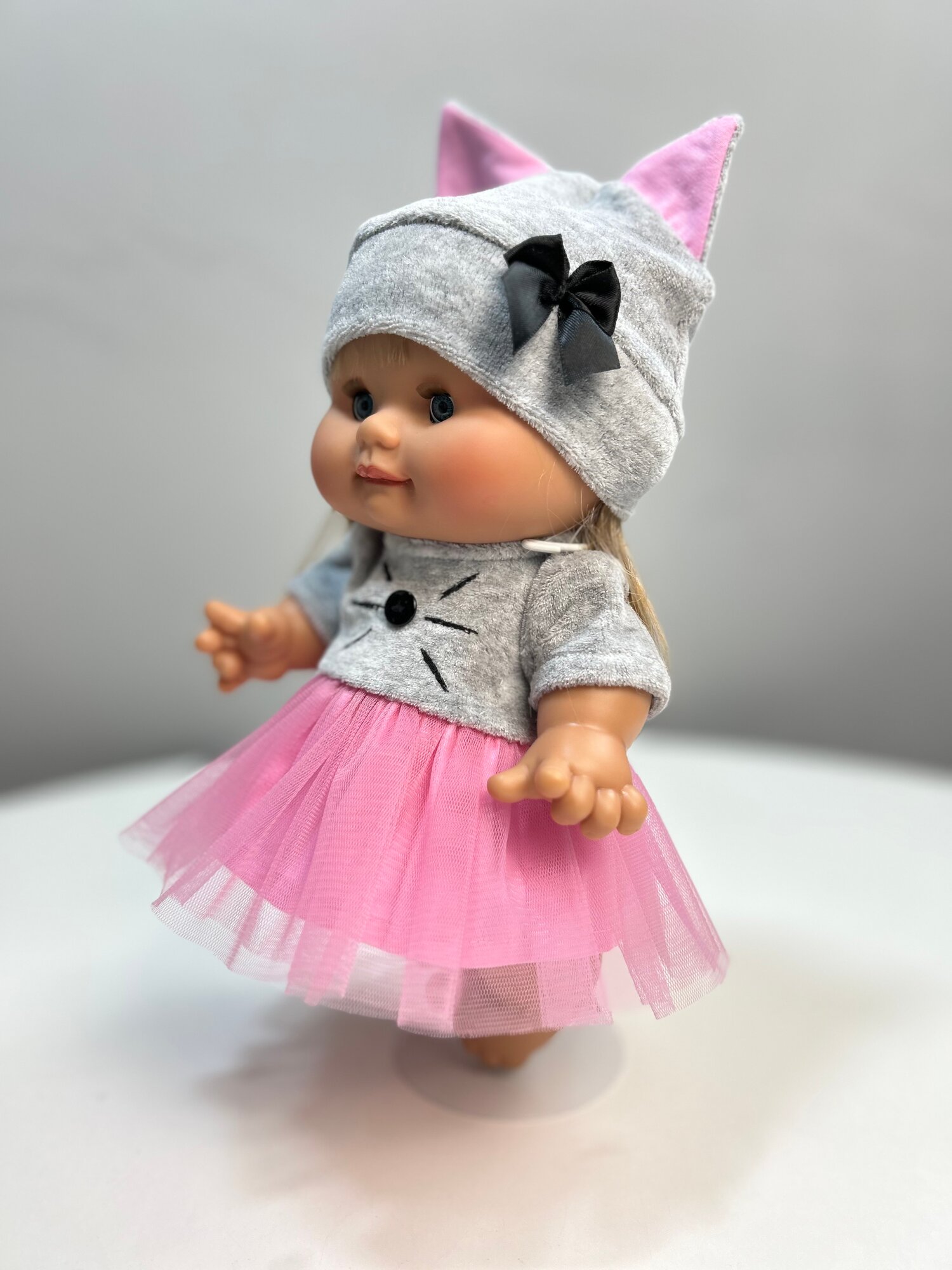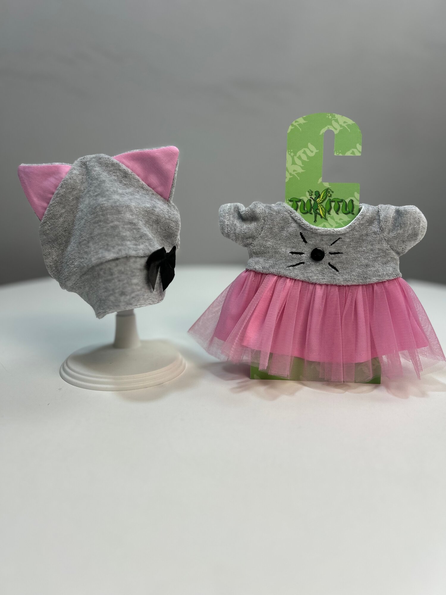 Комплект одежды для кукол и пупсов 26-30 см "Кошечка": платье и шапочка, арт. 18 интересное: