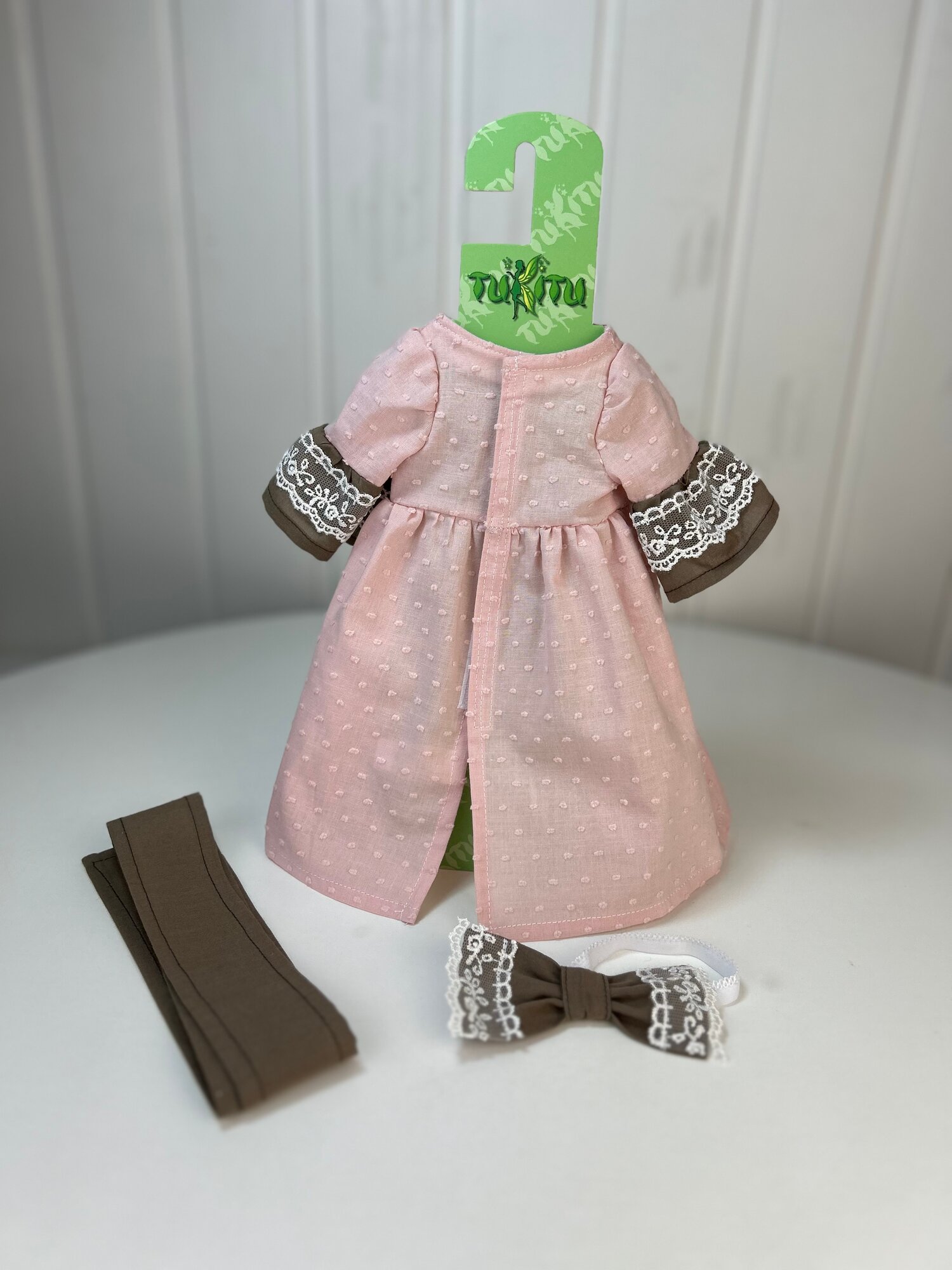 Купить Комплект одежды для кукол до 40 см: платье с кружевом и повязка на голову, арт. 34