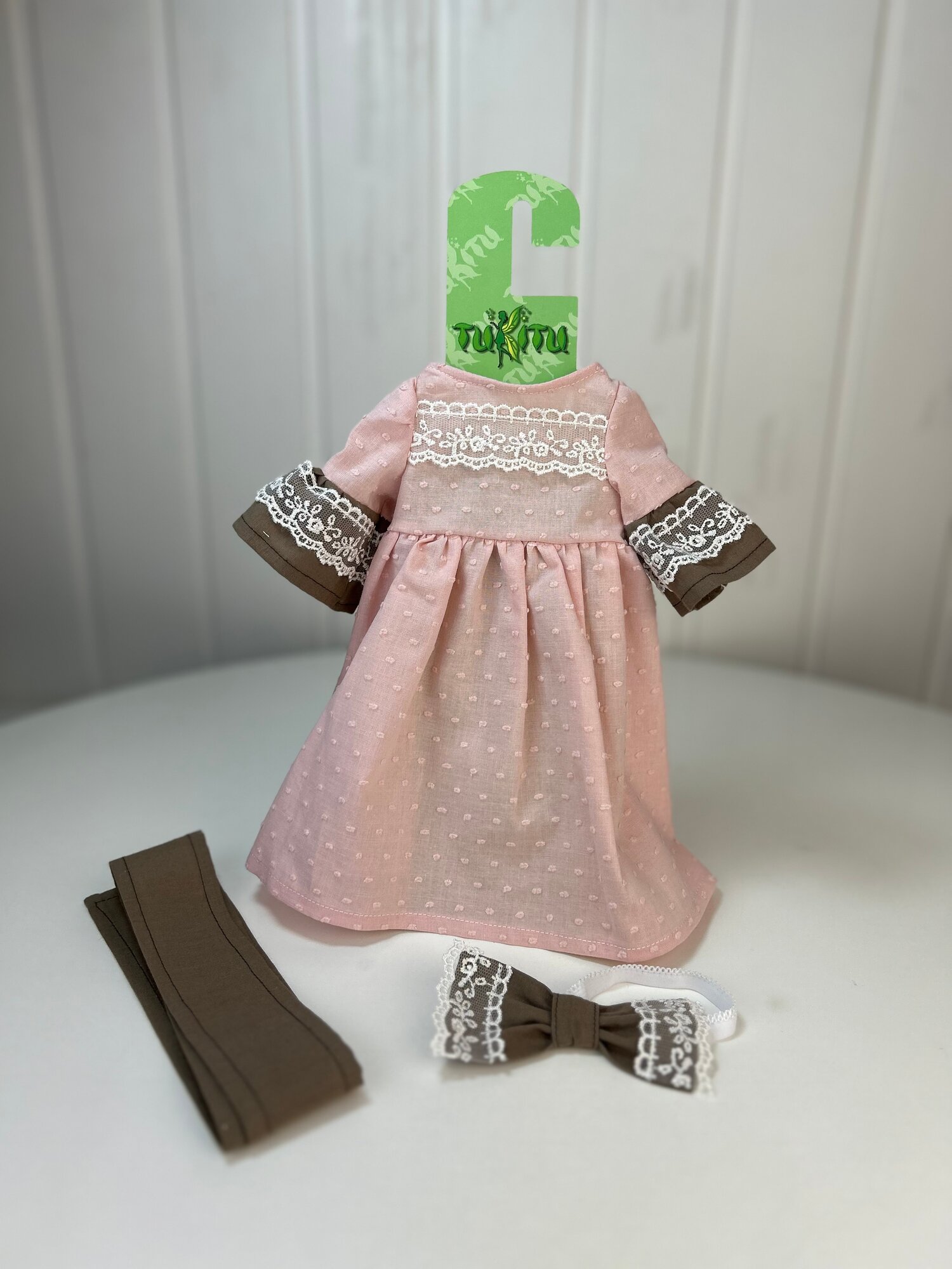 Комплект одежды для кукол до 40 см: платье с кружевом и повязка на голову, арт. 34 интересное: