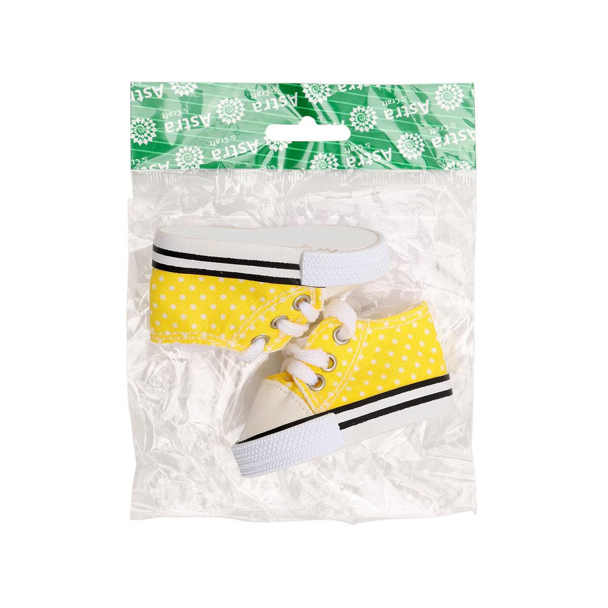 Купить Кеды обувь для кукол, 7,5*4*3,5 см, 1 пара, желтые в горошек, Astra&Craft
