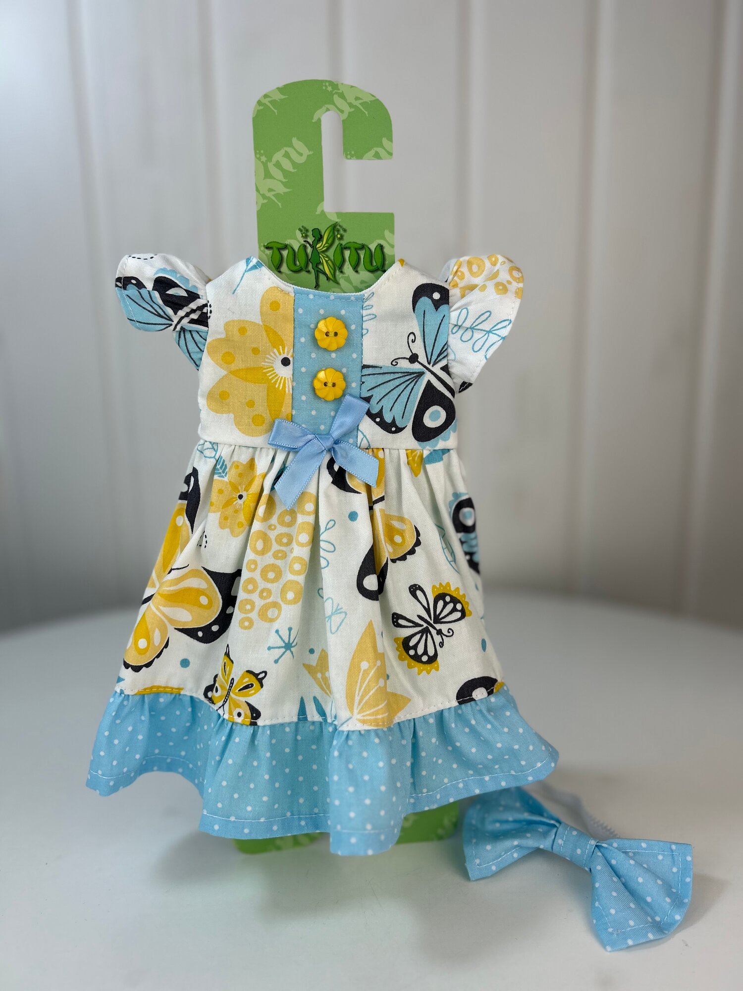 Комплект одежды для кукол 35-40 см: платье "Бабочки", бант на голову на резинке, обхват талии 17-19 см, арт. 163 интересное: