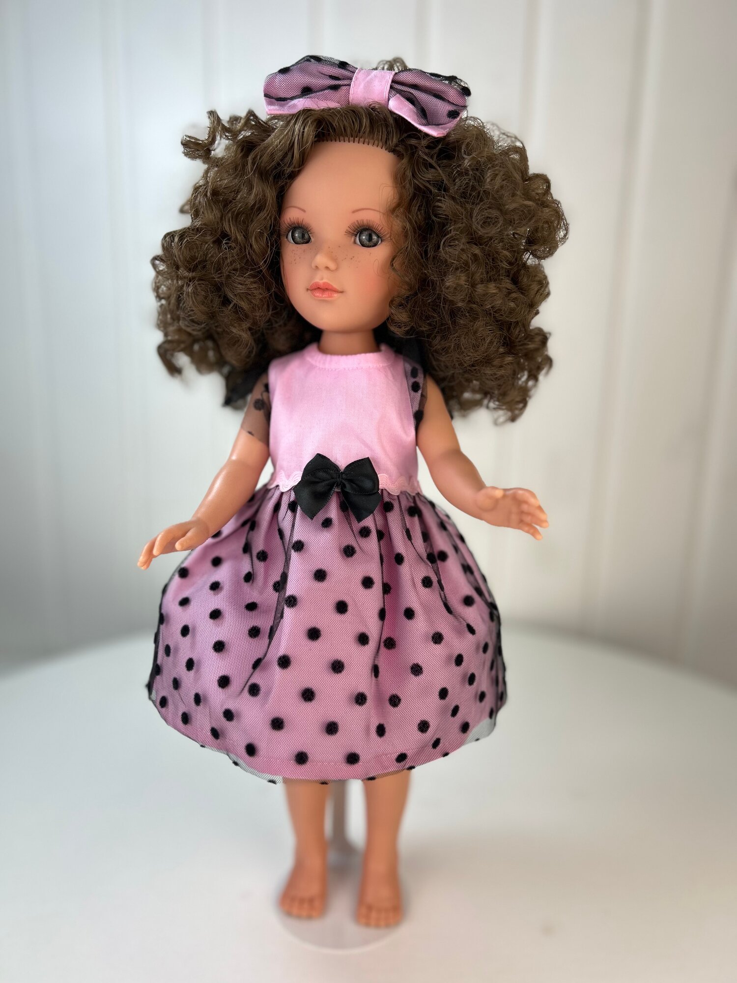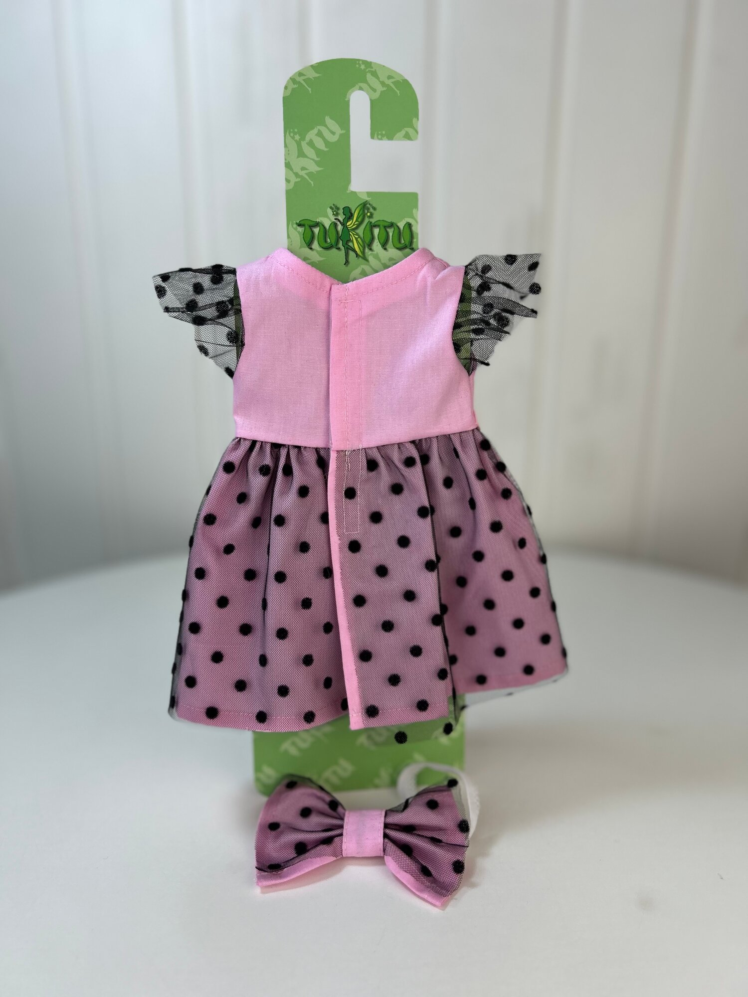 Комплект одежды для кукол 32-40 см: платье розовое с фатином в чёрный горох и бант на голову, арт. 168 интересное:
