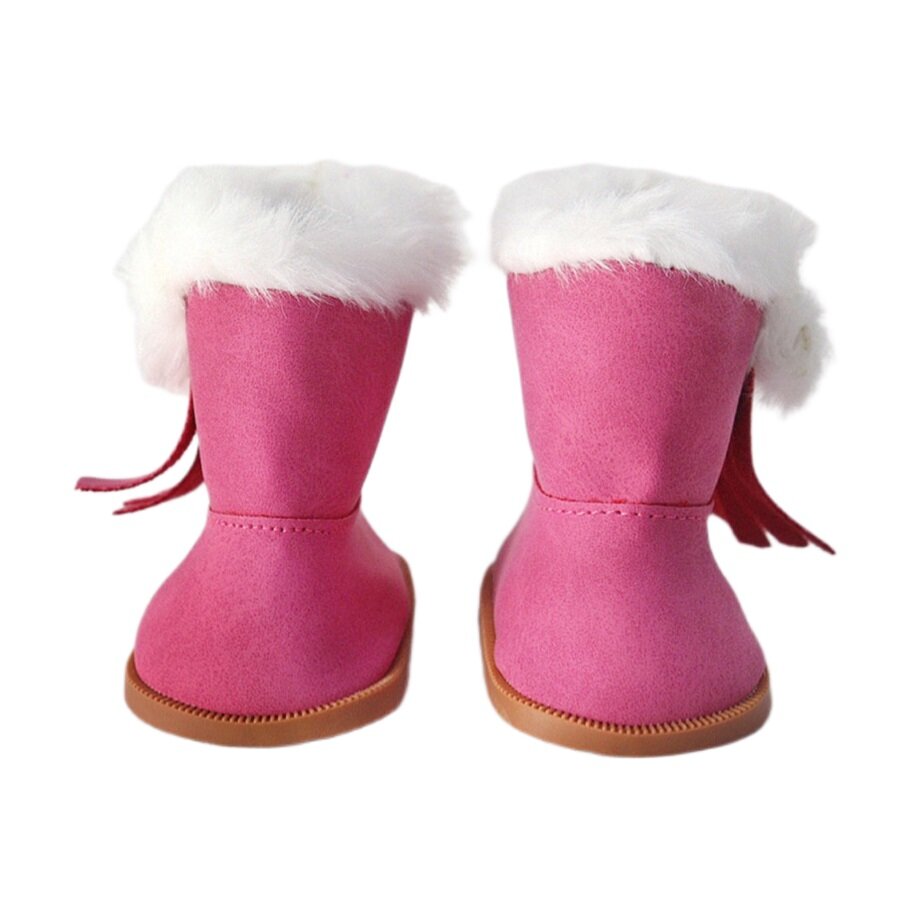 Купить Обувь для кукол, Сапожки меховые 7 см для кукол 42-50 см, фуксия, бежевый