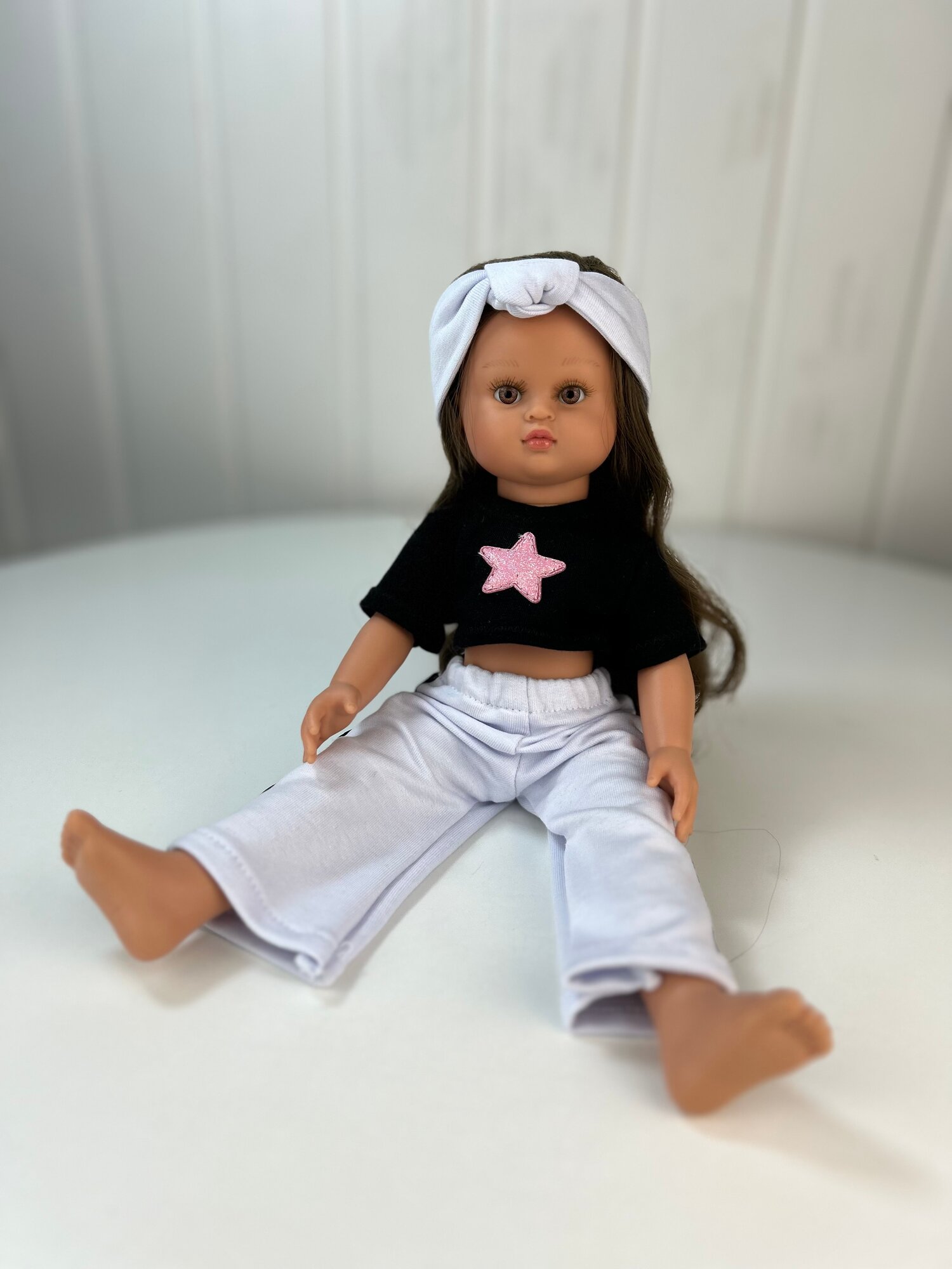 Комплект спортивной одежды для кукол 32-35 см, черно-белый: брюки, футболка, повязка (обхват талии 13-16 см), арт. 114 интересное: