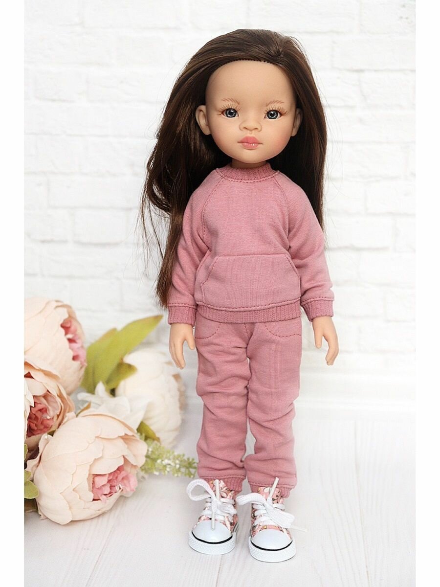 Комплект одежды и обуви для кукол Paola Reina 32 см (шубка ягненок, костюм, шапка, кеды), пудровый, светло-пурпурный, розовый