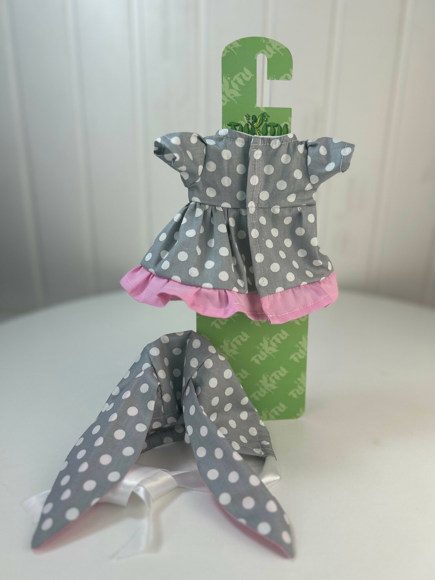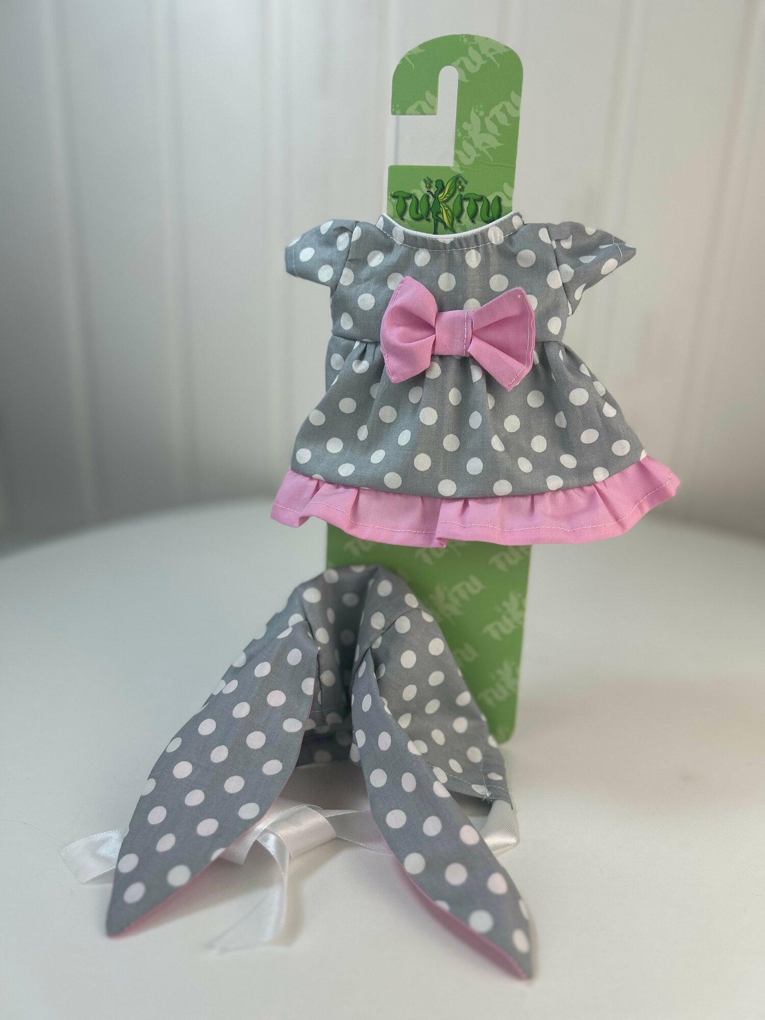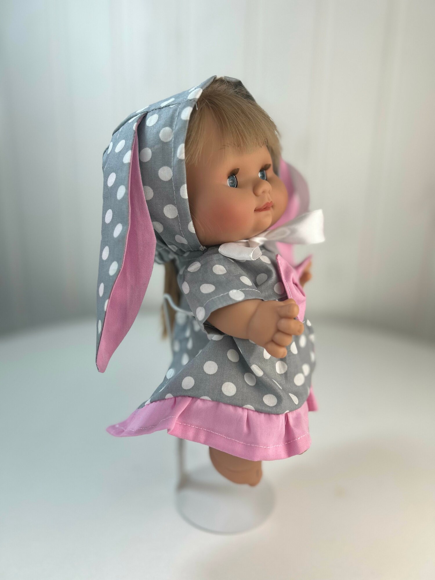 Комплект одежды для кукол и пупсов 26-30 см: Наряд "Заюшка": платье в горошек и чепец с ушками, арт. 100 интересное: