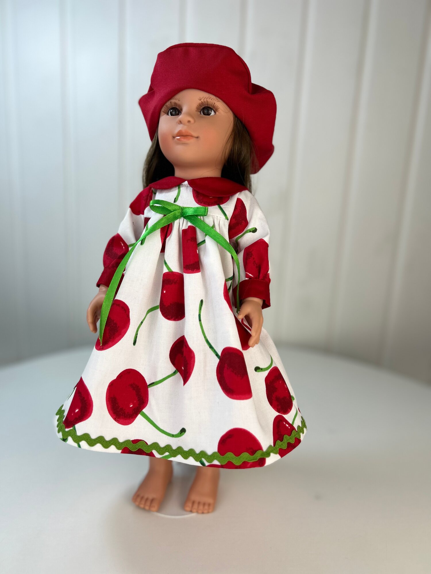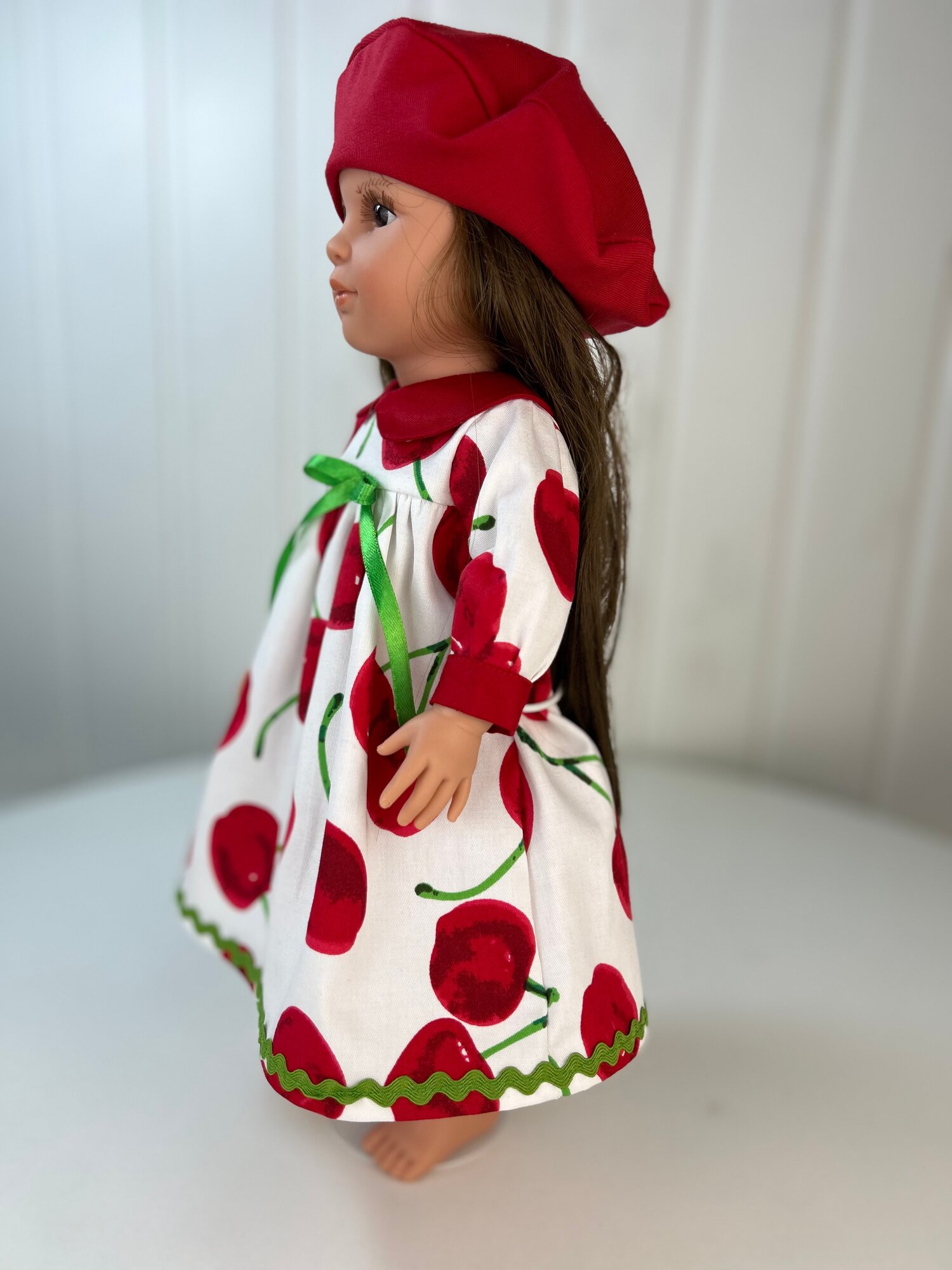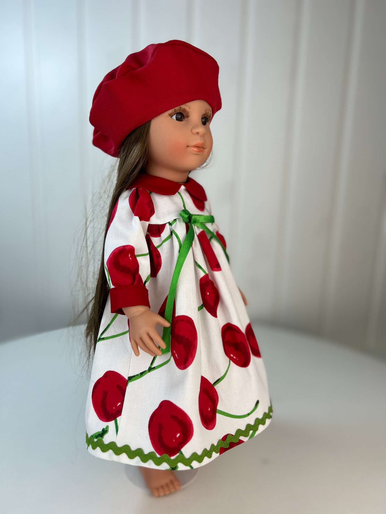 Комплект одежды для кукол 32-34 см: платье свободное "Вишневый сад", берет, арт. 32 интересное: